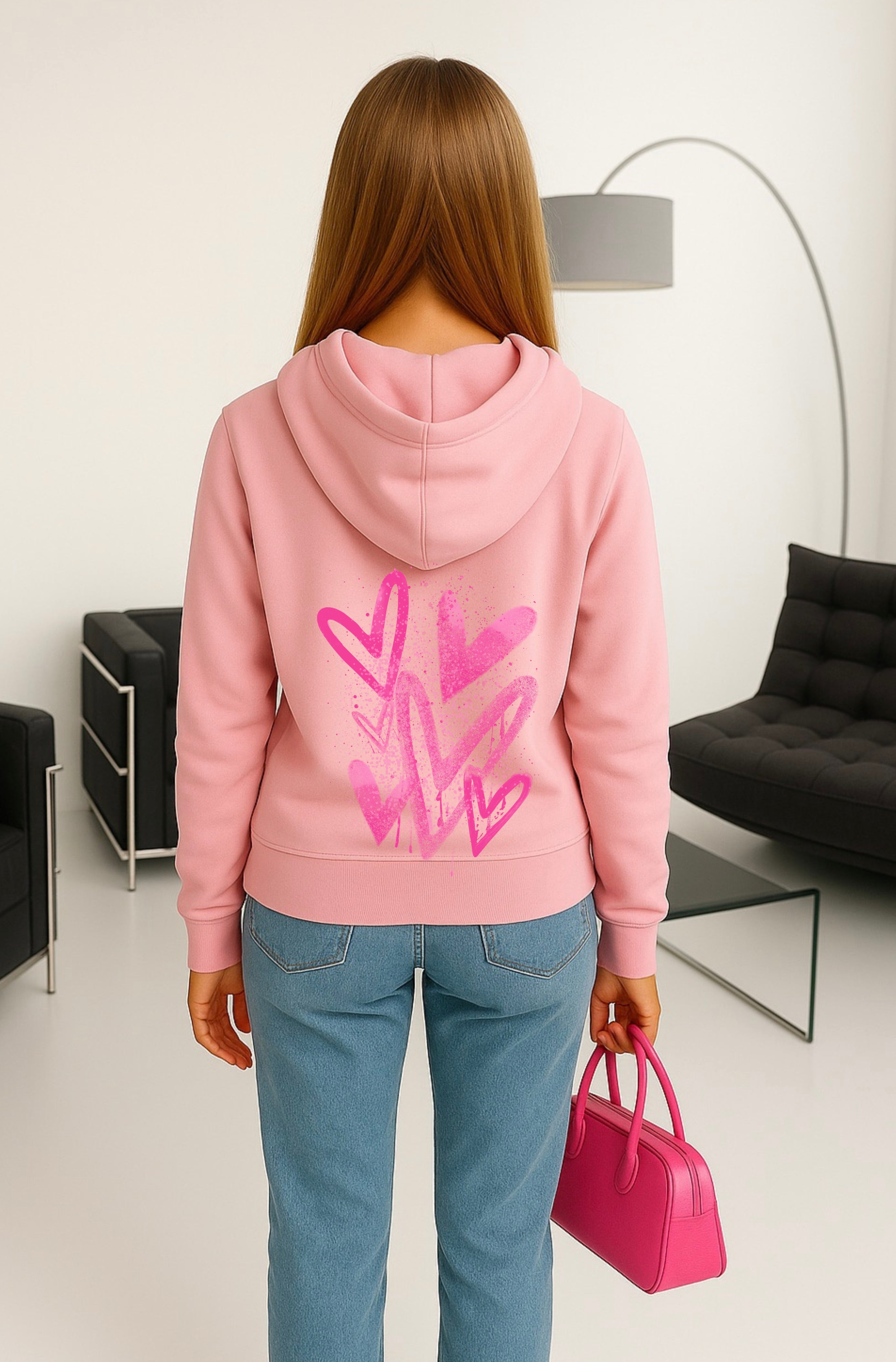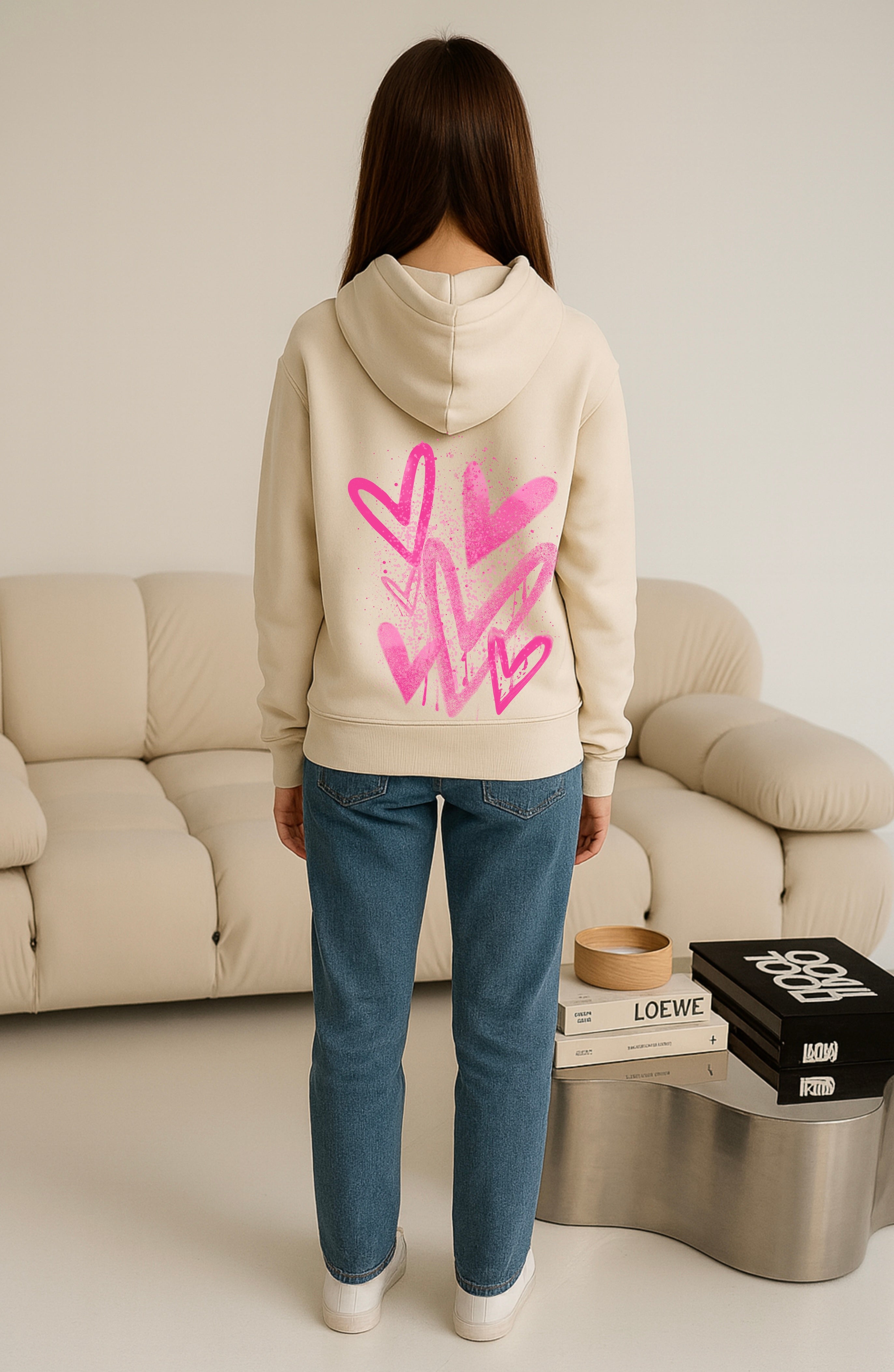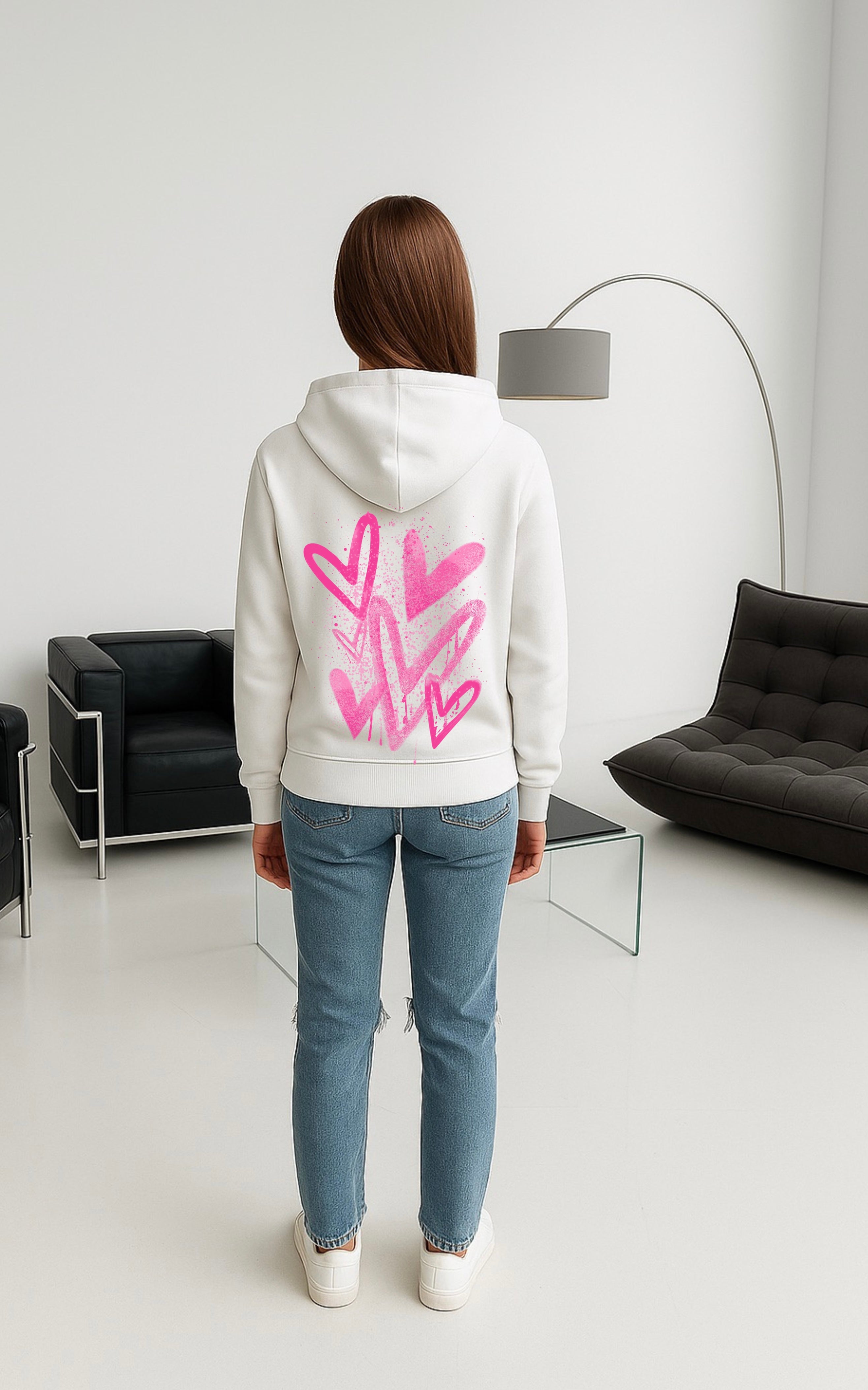 Introducing the Miss Runway graffiti Heart Hoodie, a unique and eye-catching addition to your wardrobe. This Hoodie features a one-of-a-kind design that is sure to turn heads. This Hoodie is perfect for those who want to make a statement with their fashion choices.