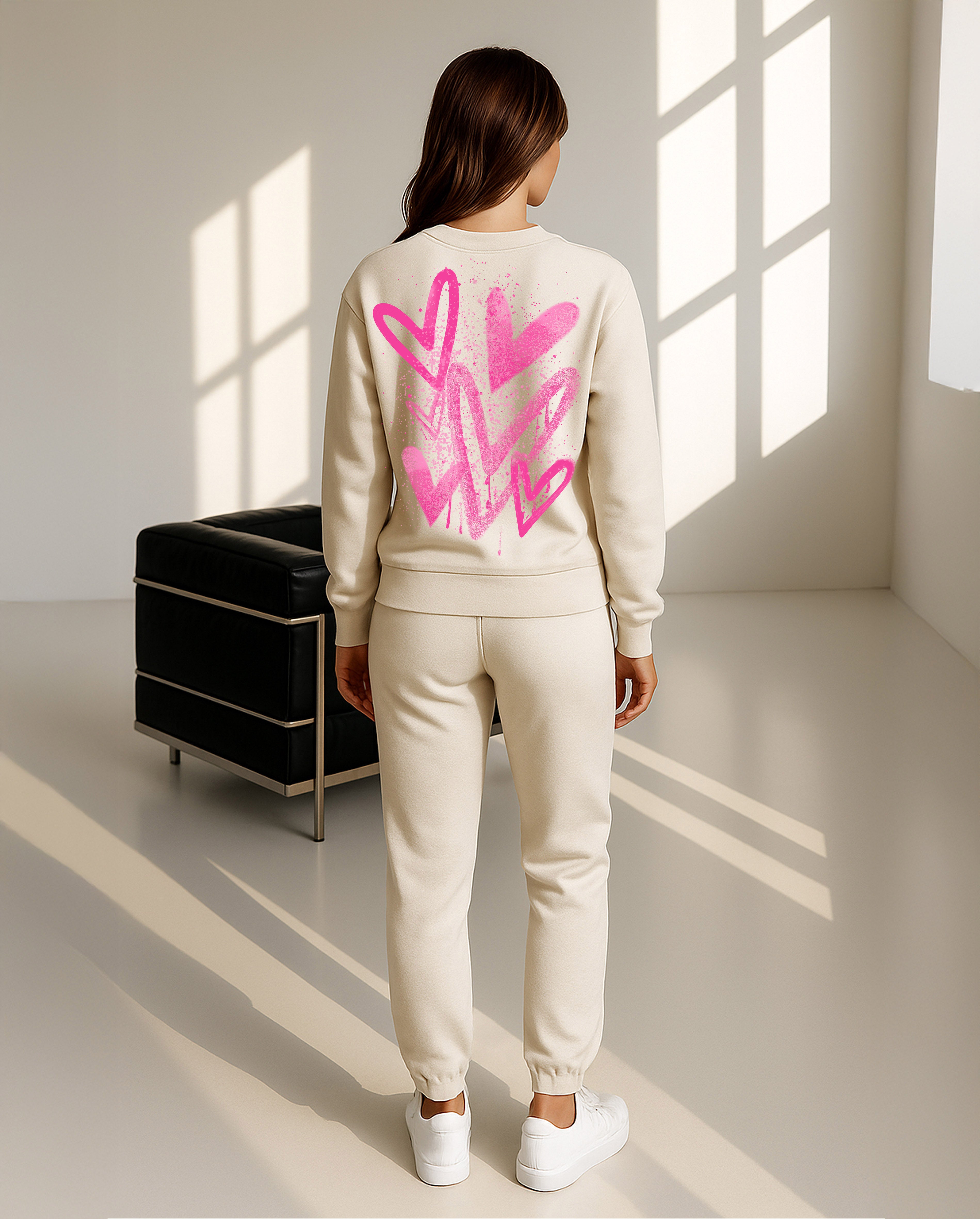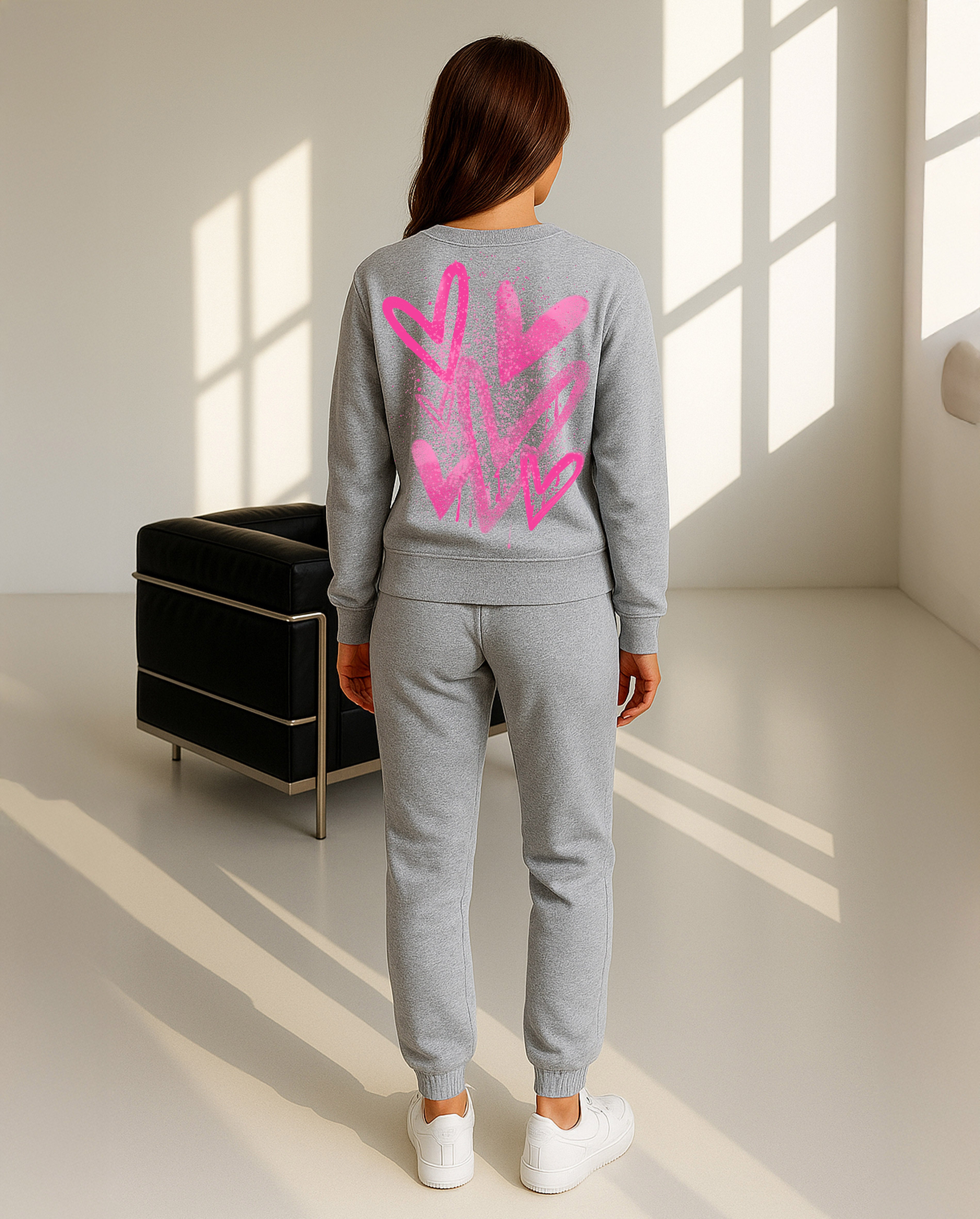 Hot Pink Scattered Hearts Printed Sweatshirt Tracksuit Adult