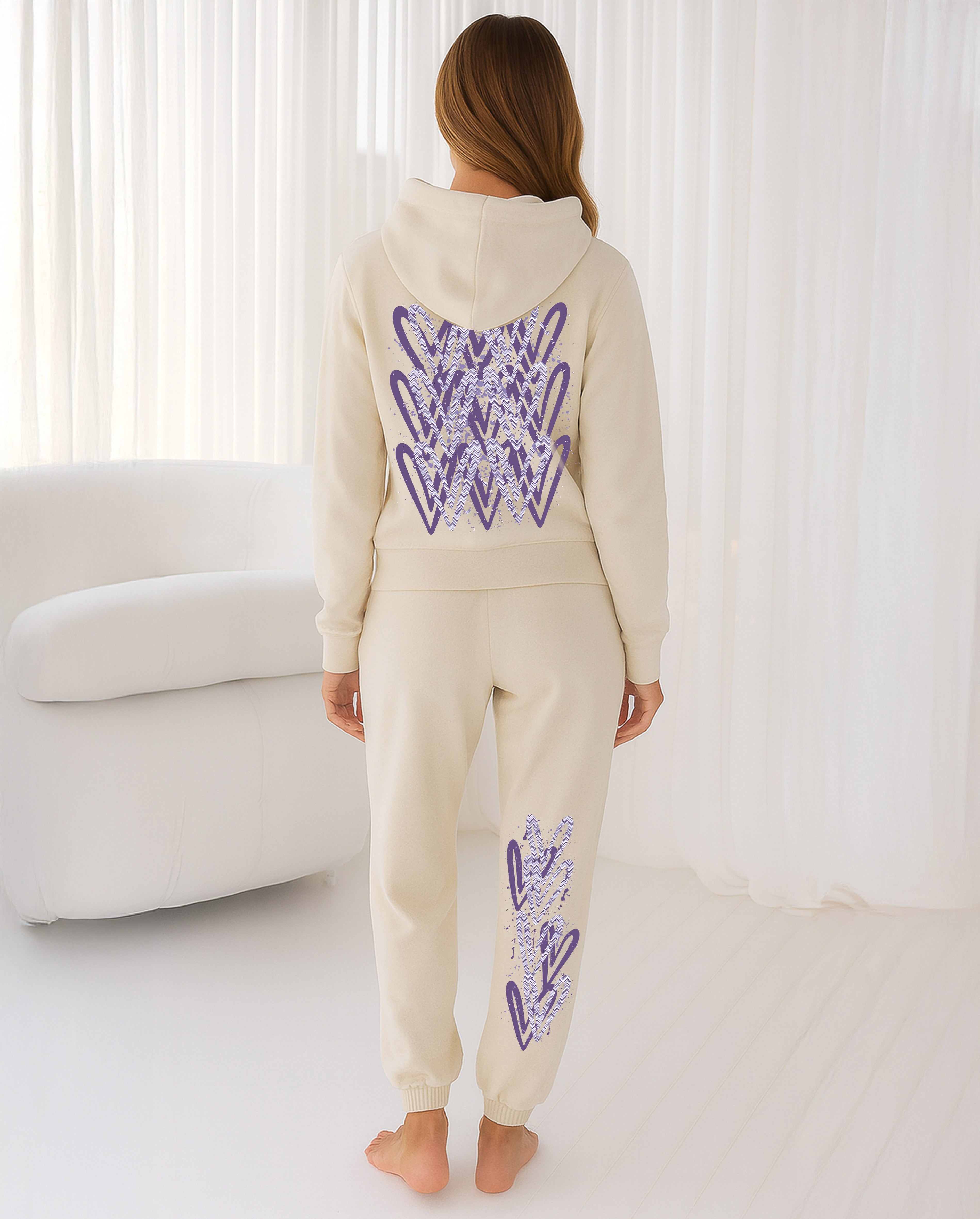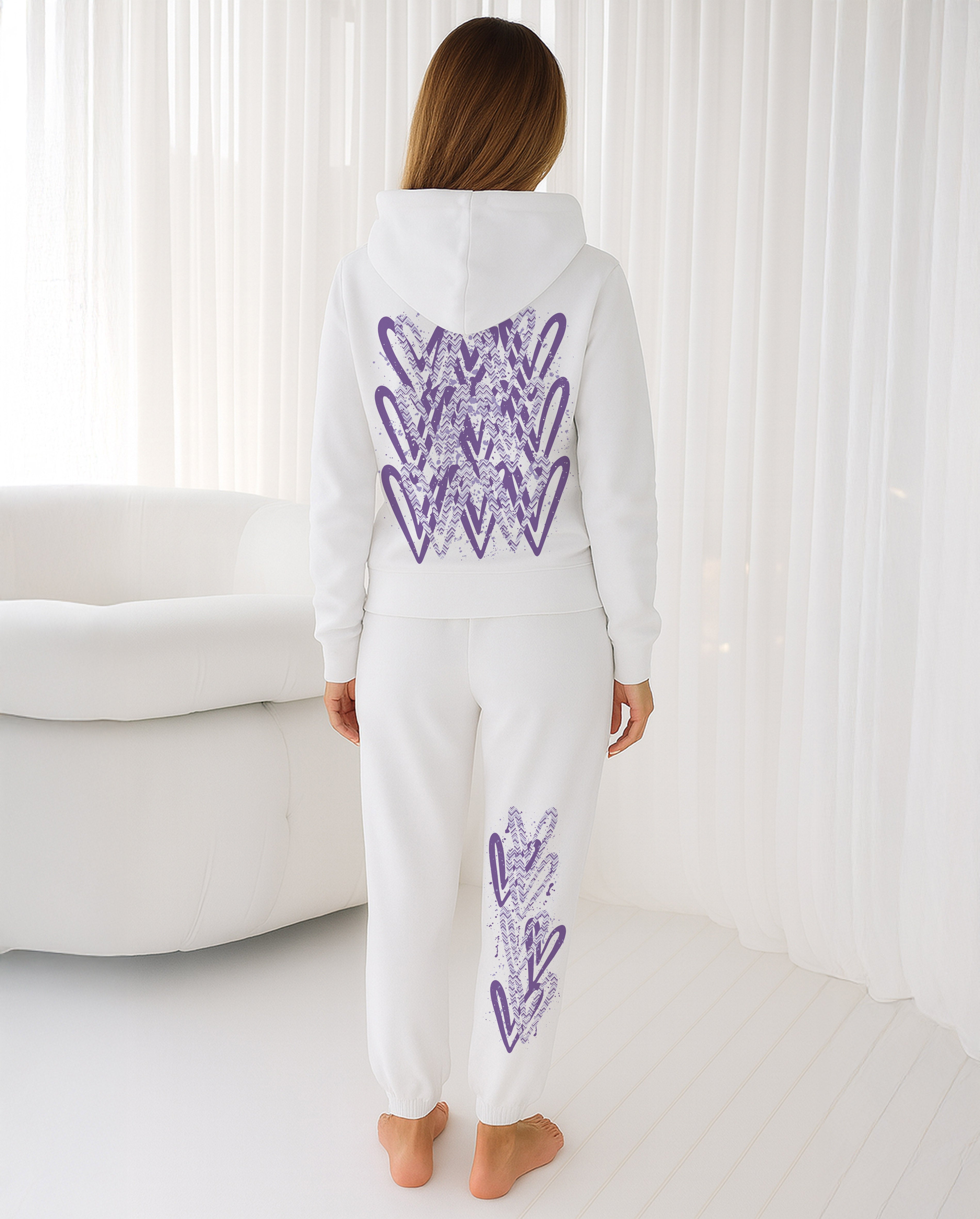 Lilac Zig Zag Hearts Printed Hooded Tracksuit Adult