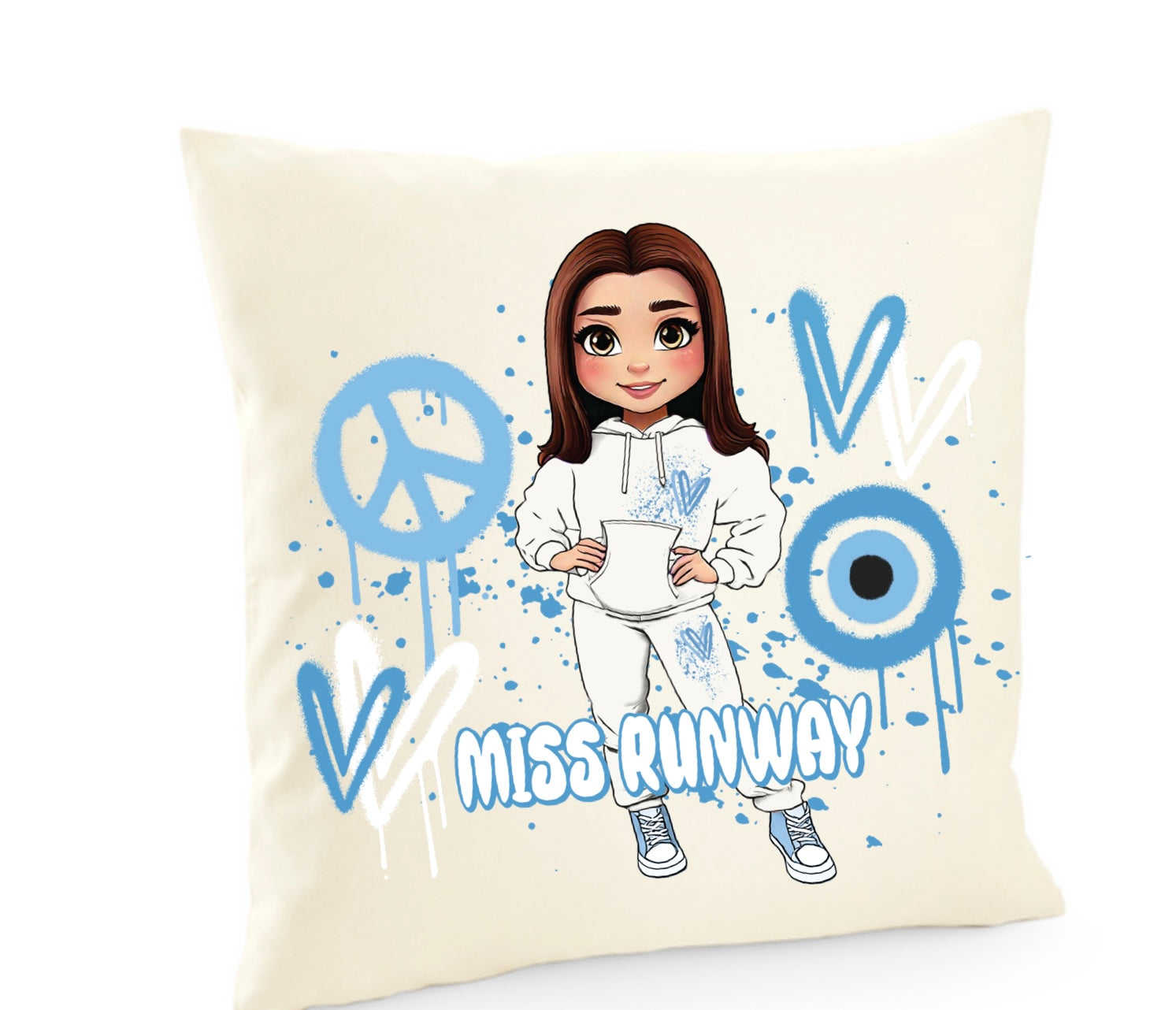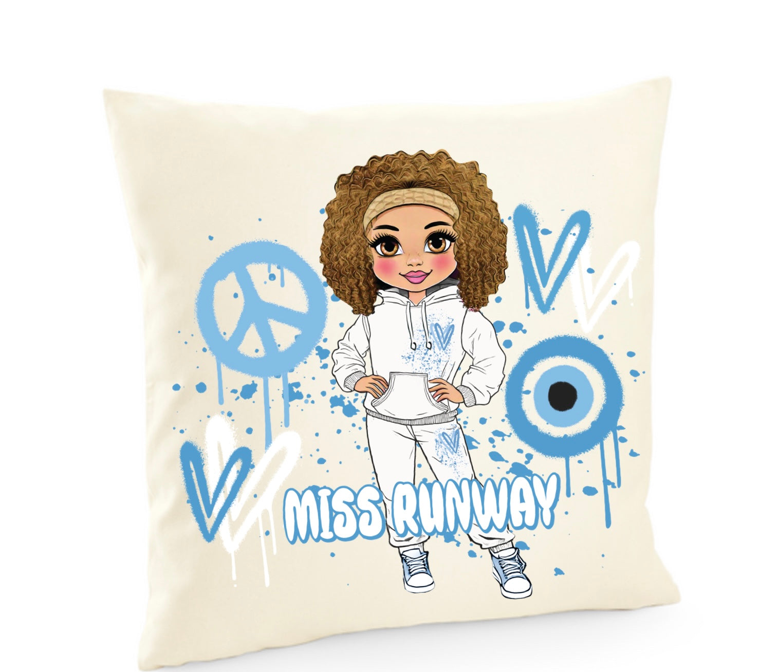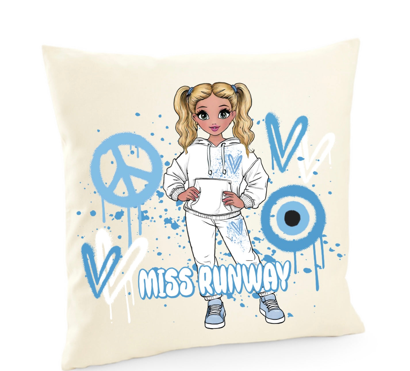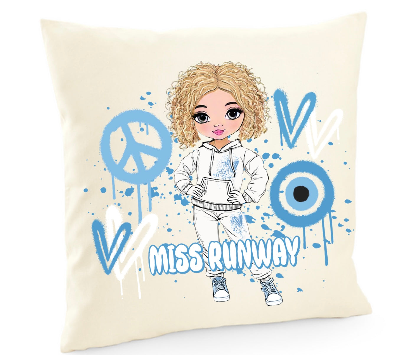 Miss Runway Doll Blue Heart Design Cushion