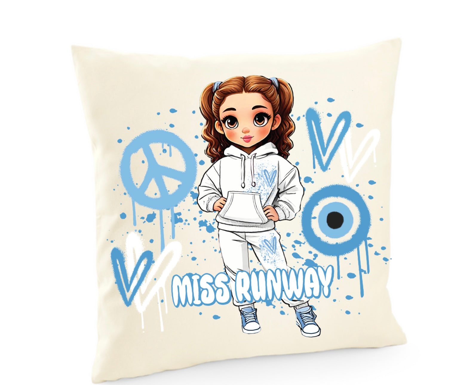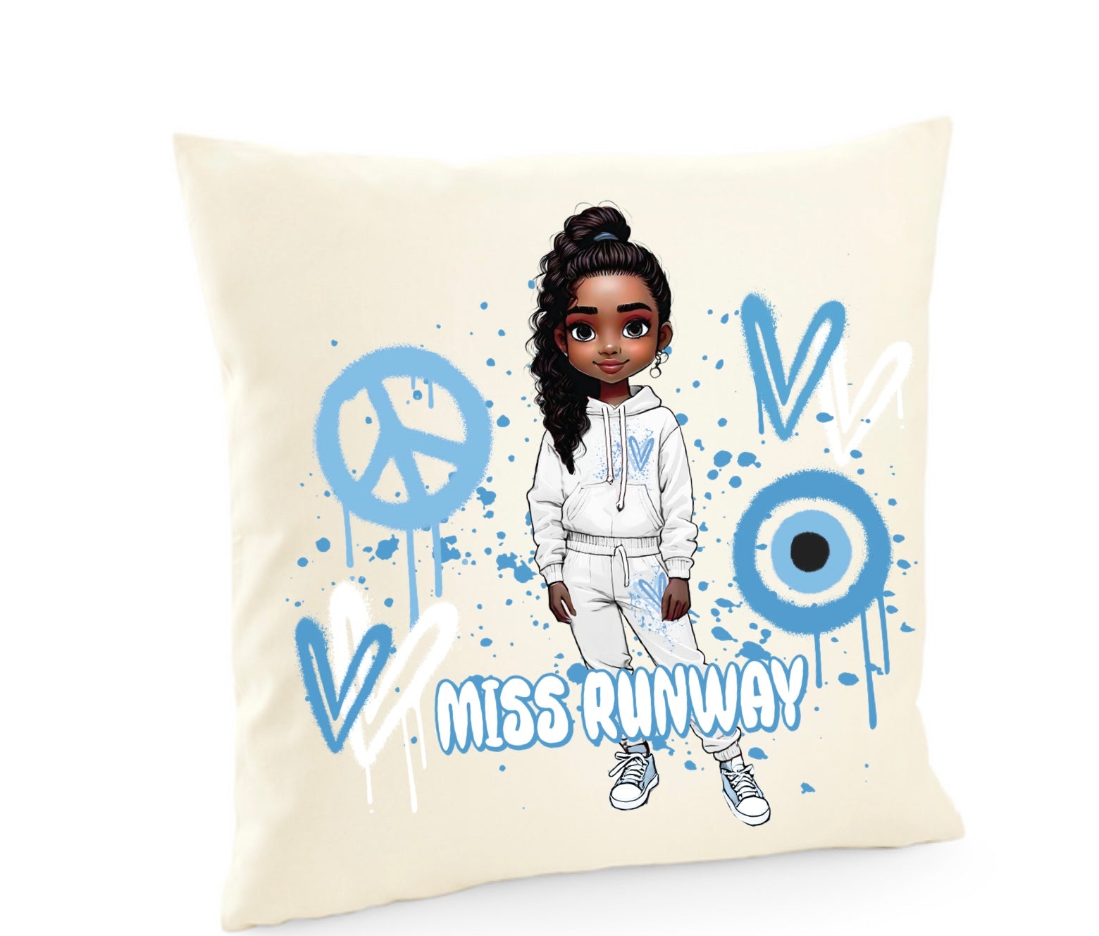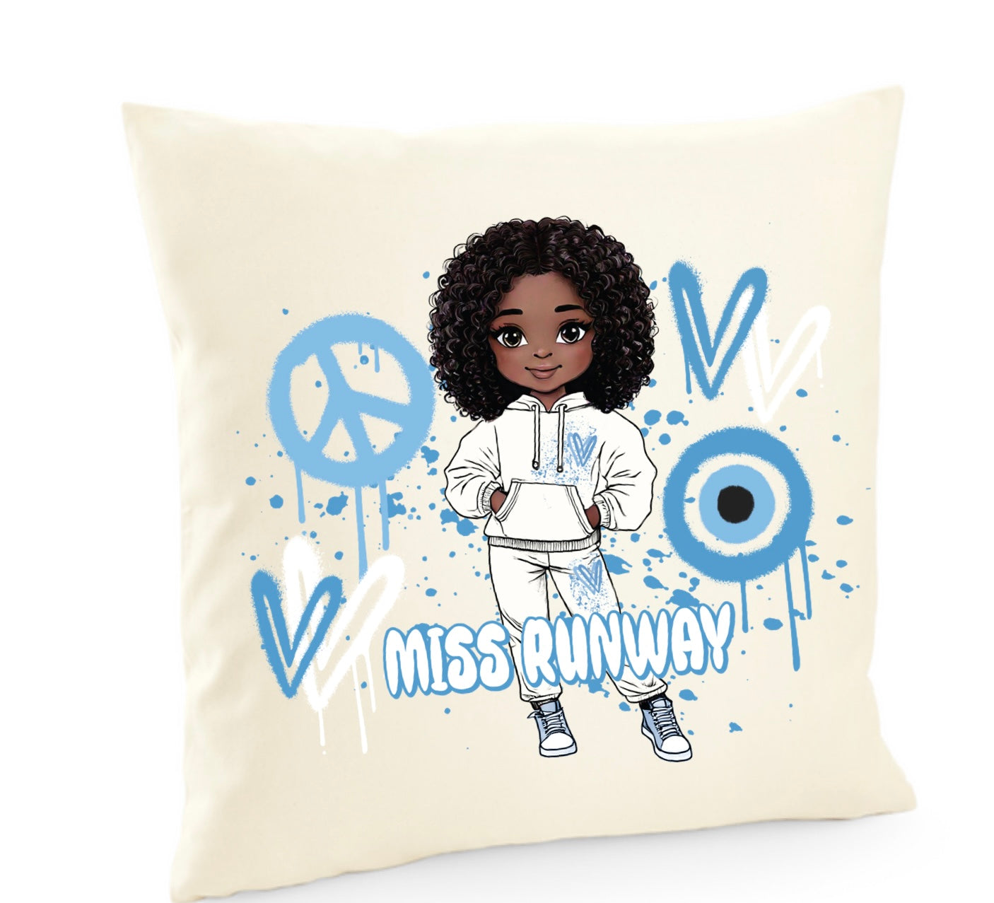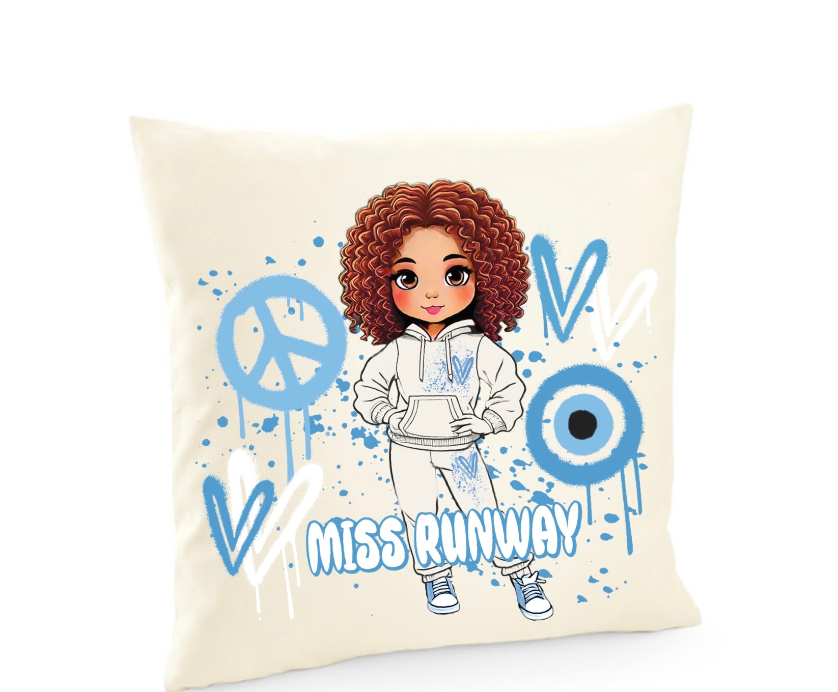 Miss Runway Doll Blue Heart Design Cushion