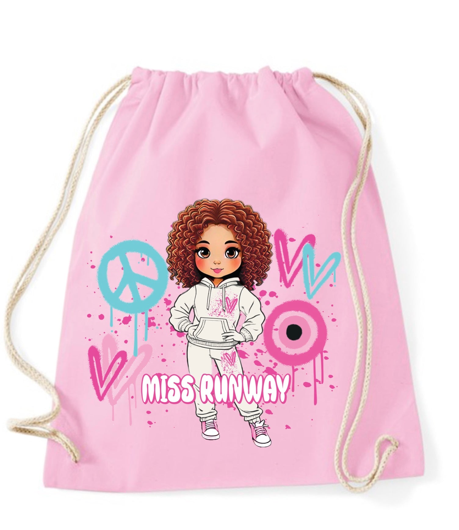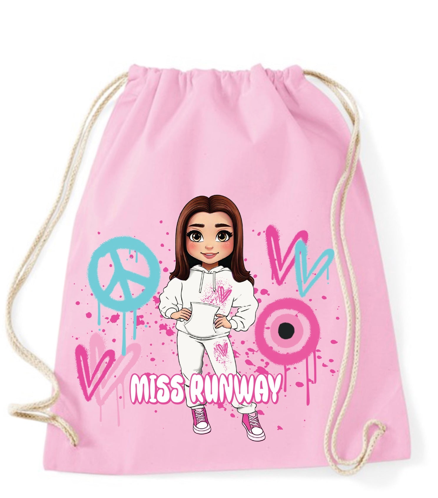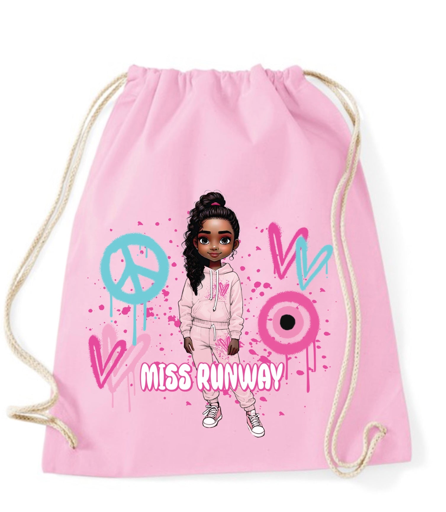 The Miss Runway Doll Pink Heart Design Drawstring Bag combines playful charm with practical style. Crafted for easy carrying, this...
