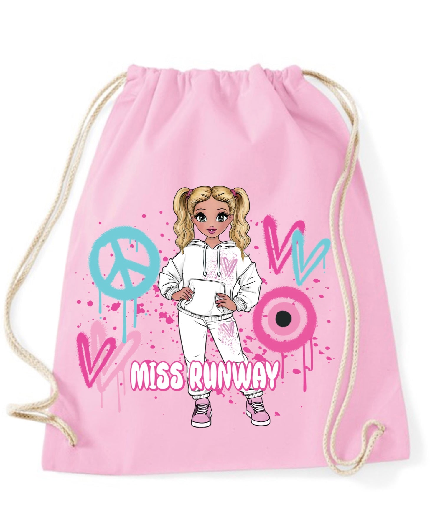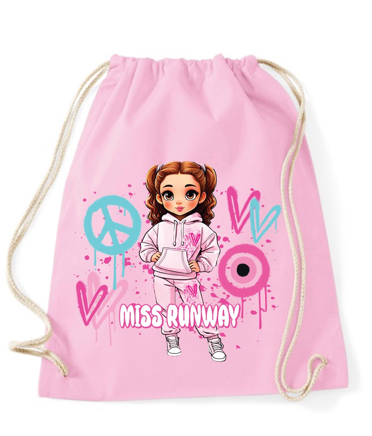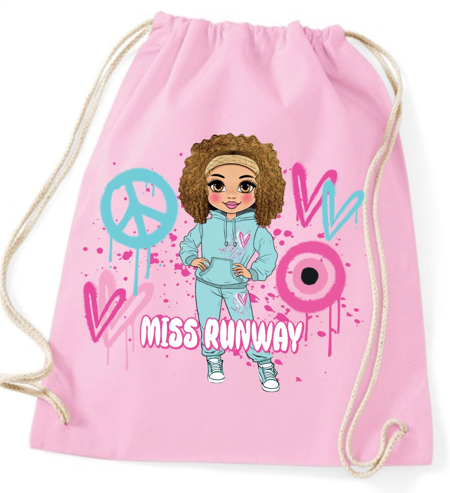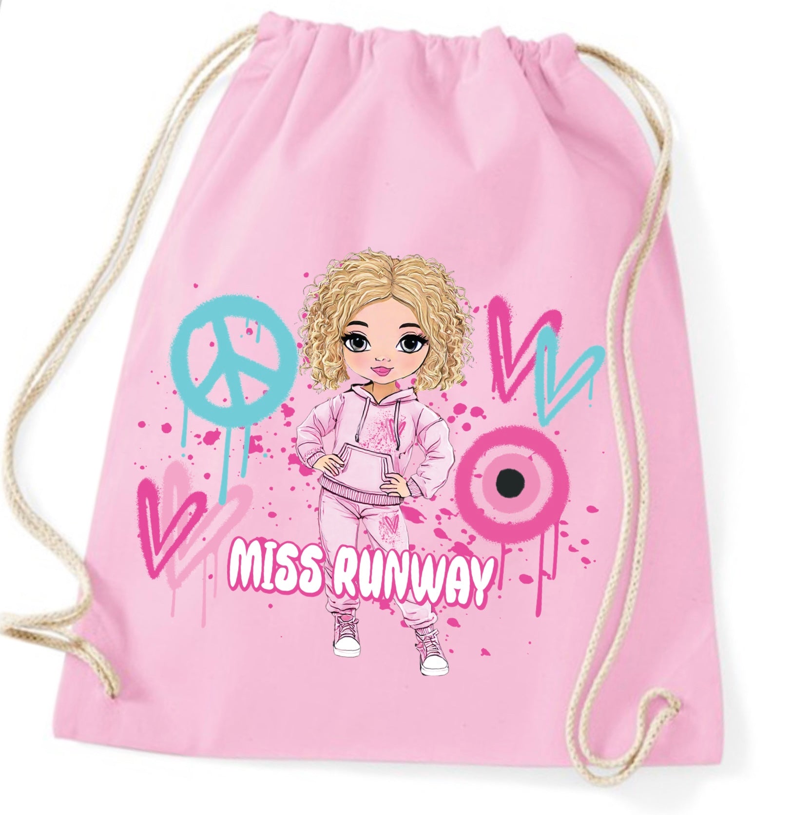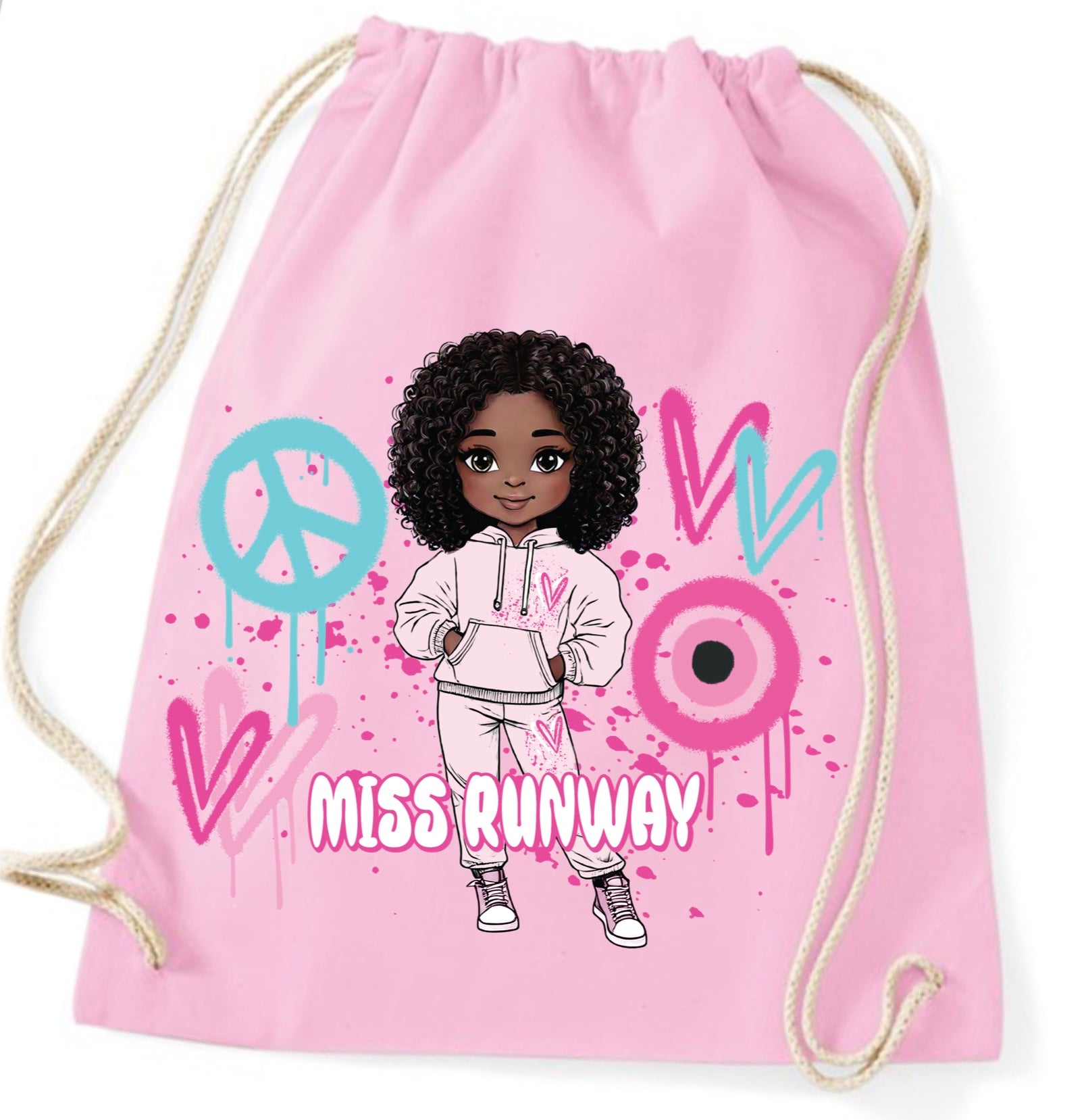 Miss Runway Doll Pink/Green Heart Design Drawstring Bag
