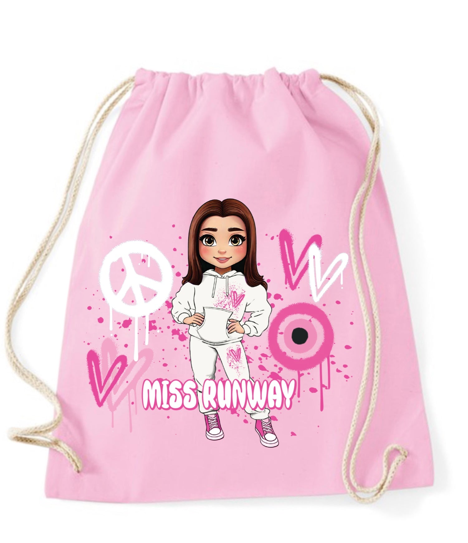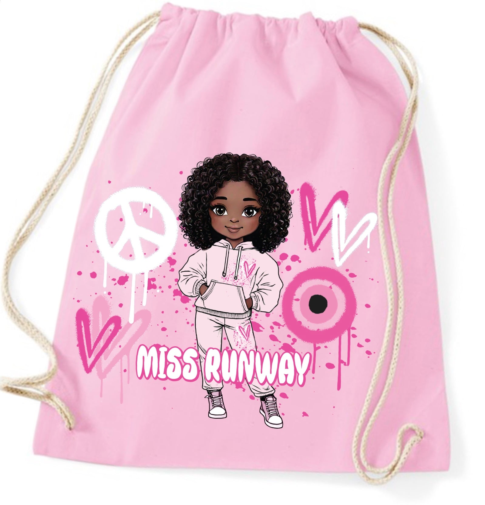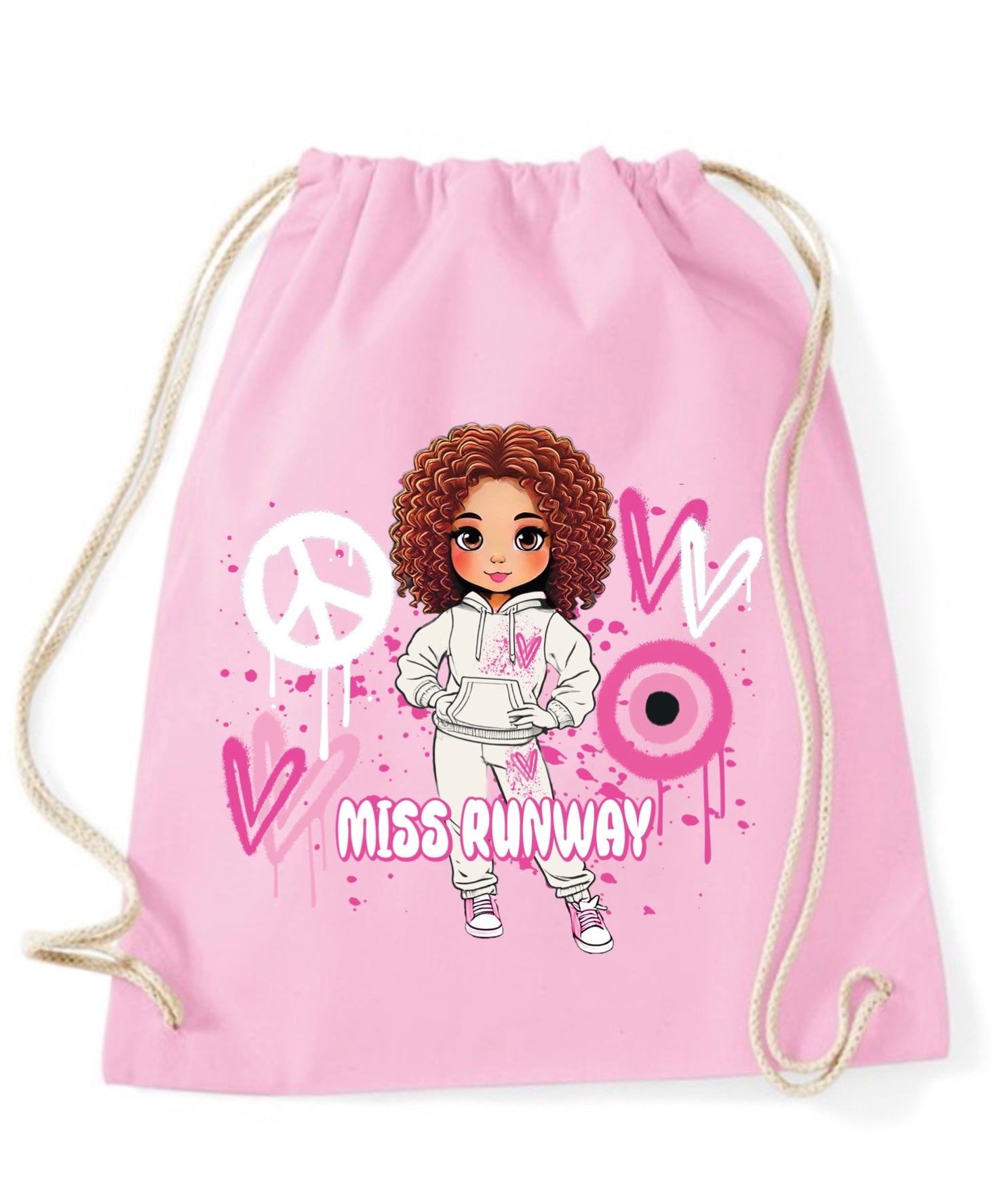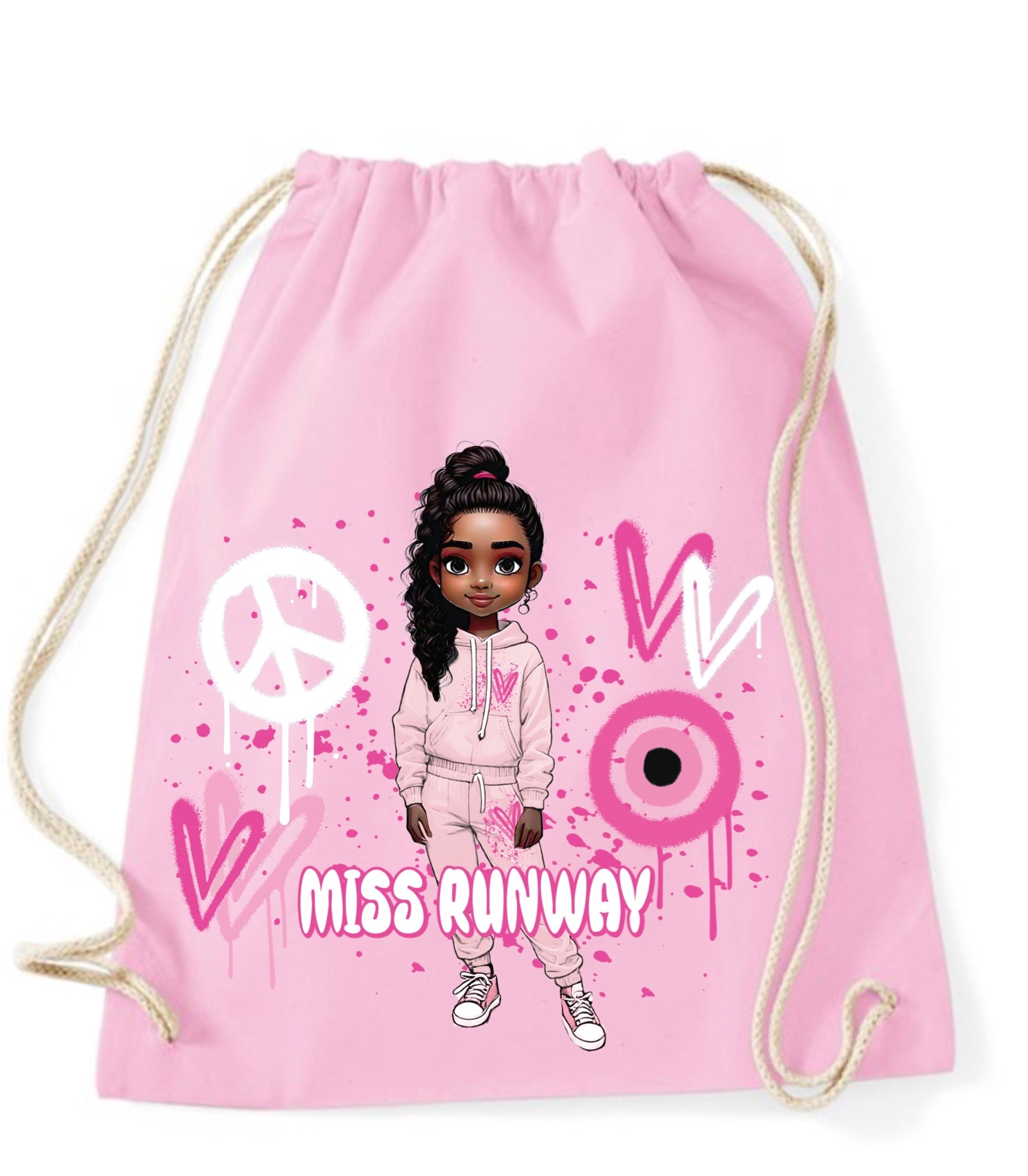 The Miss Runway Doll Pink Heart Design Drawstring Bag combines playful charm with practical style. Crafted for easy carrying, this...