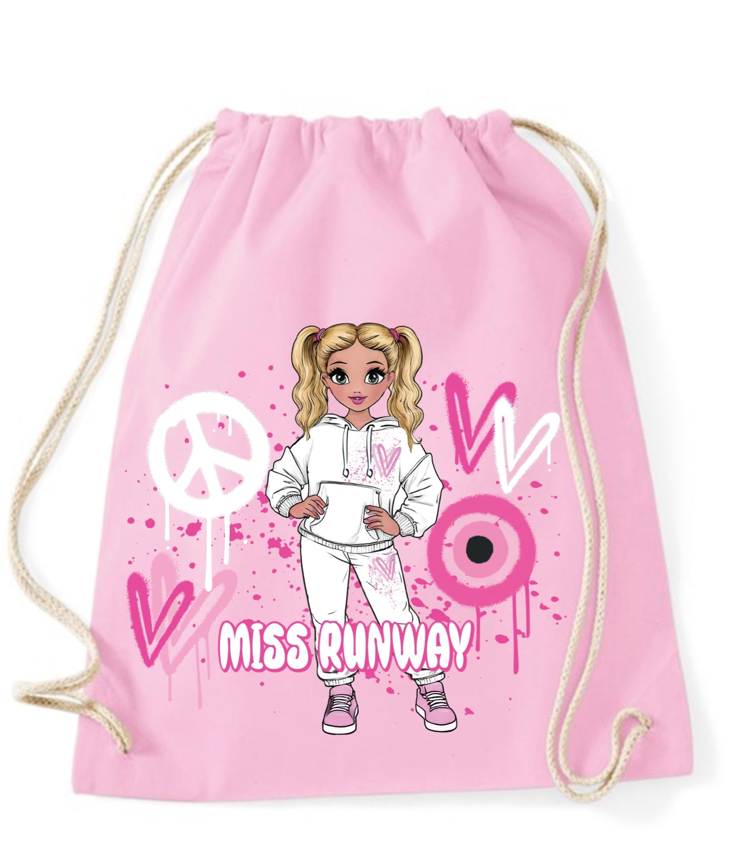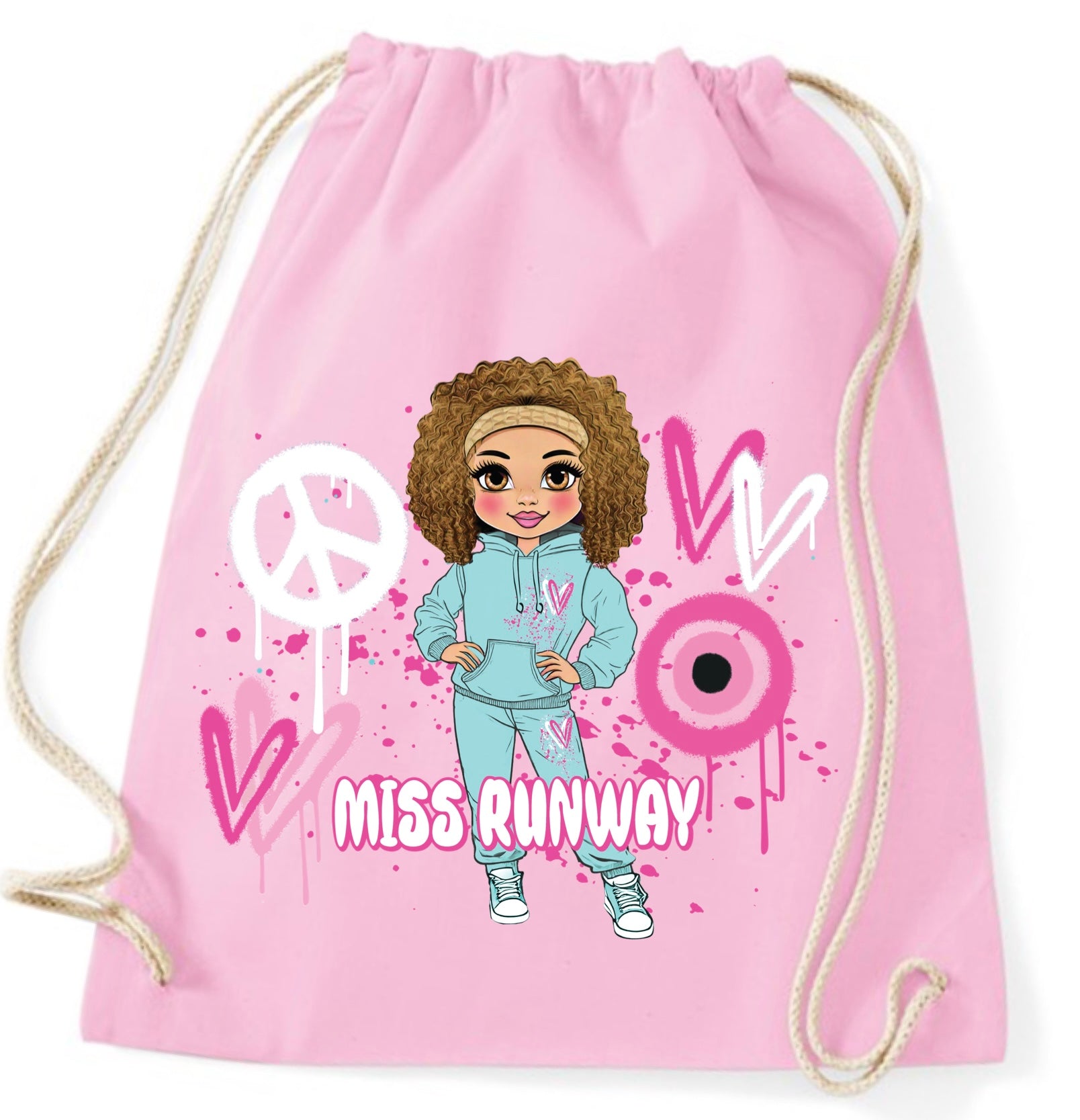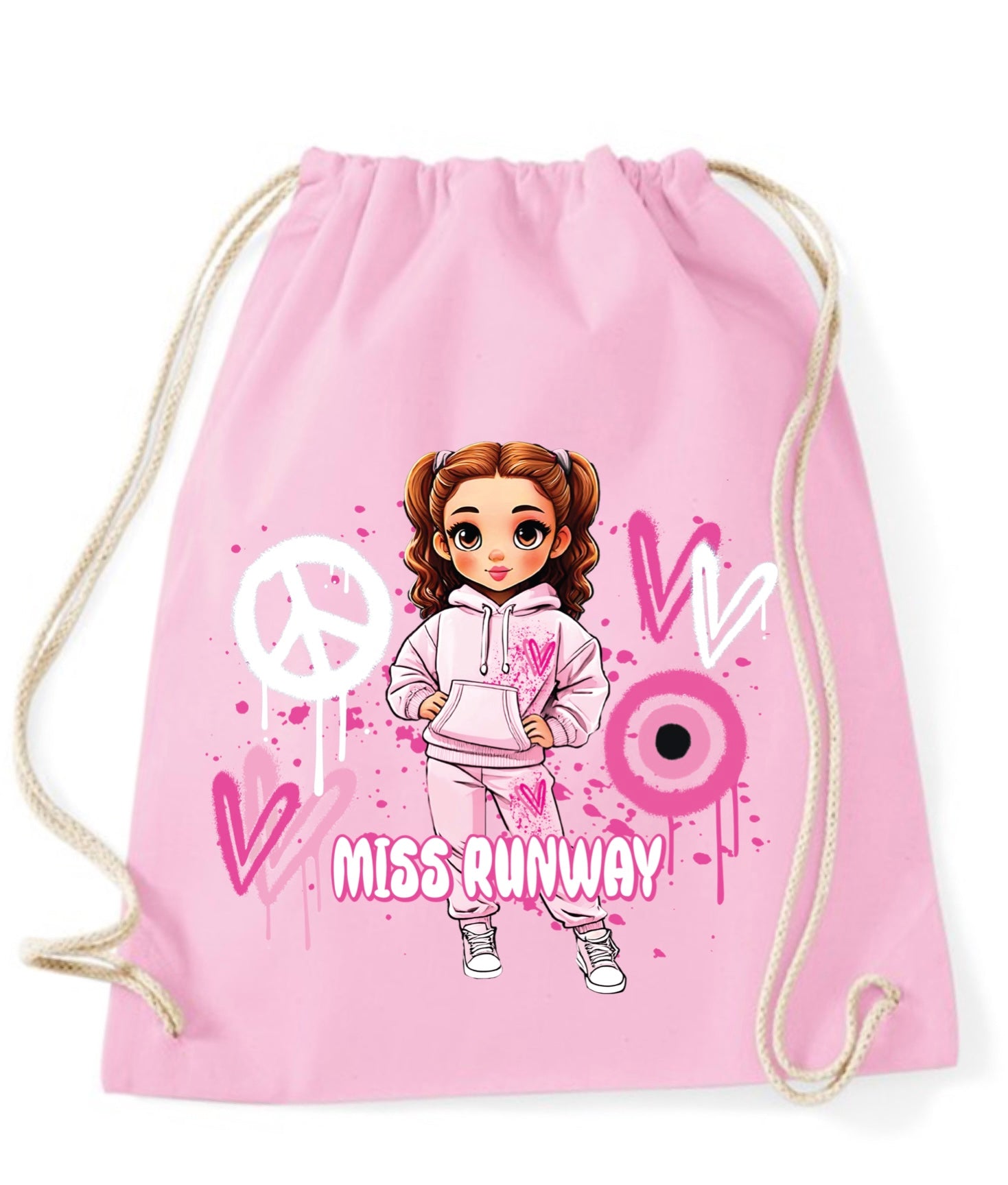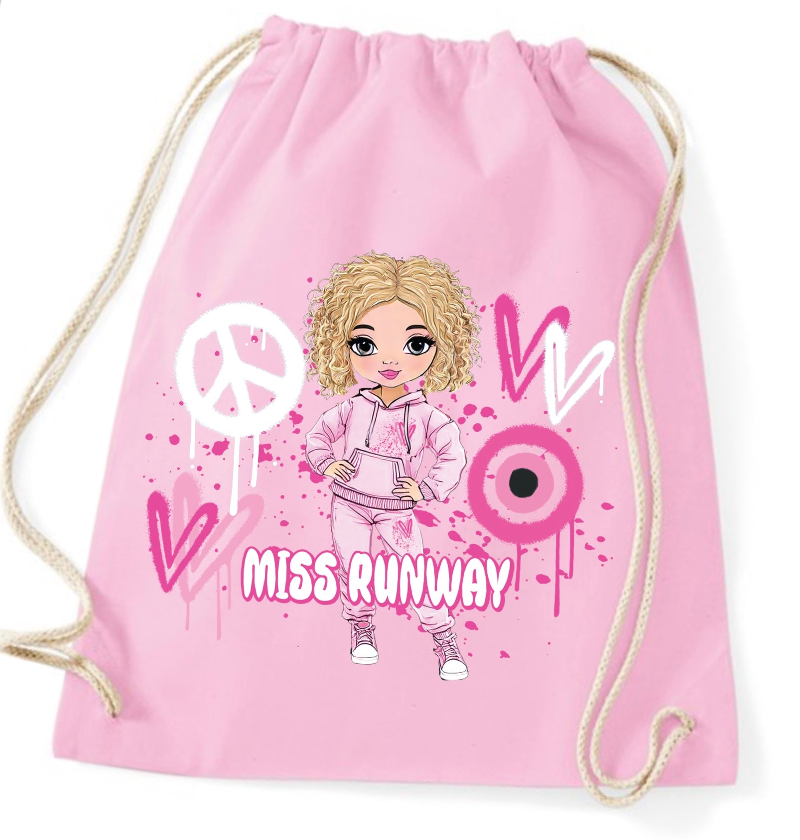 The Miss Runway Doll Pink Heart Design Drawstring Bag combines playful charm with practical style. Crafted for easy carrying, this...