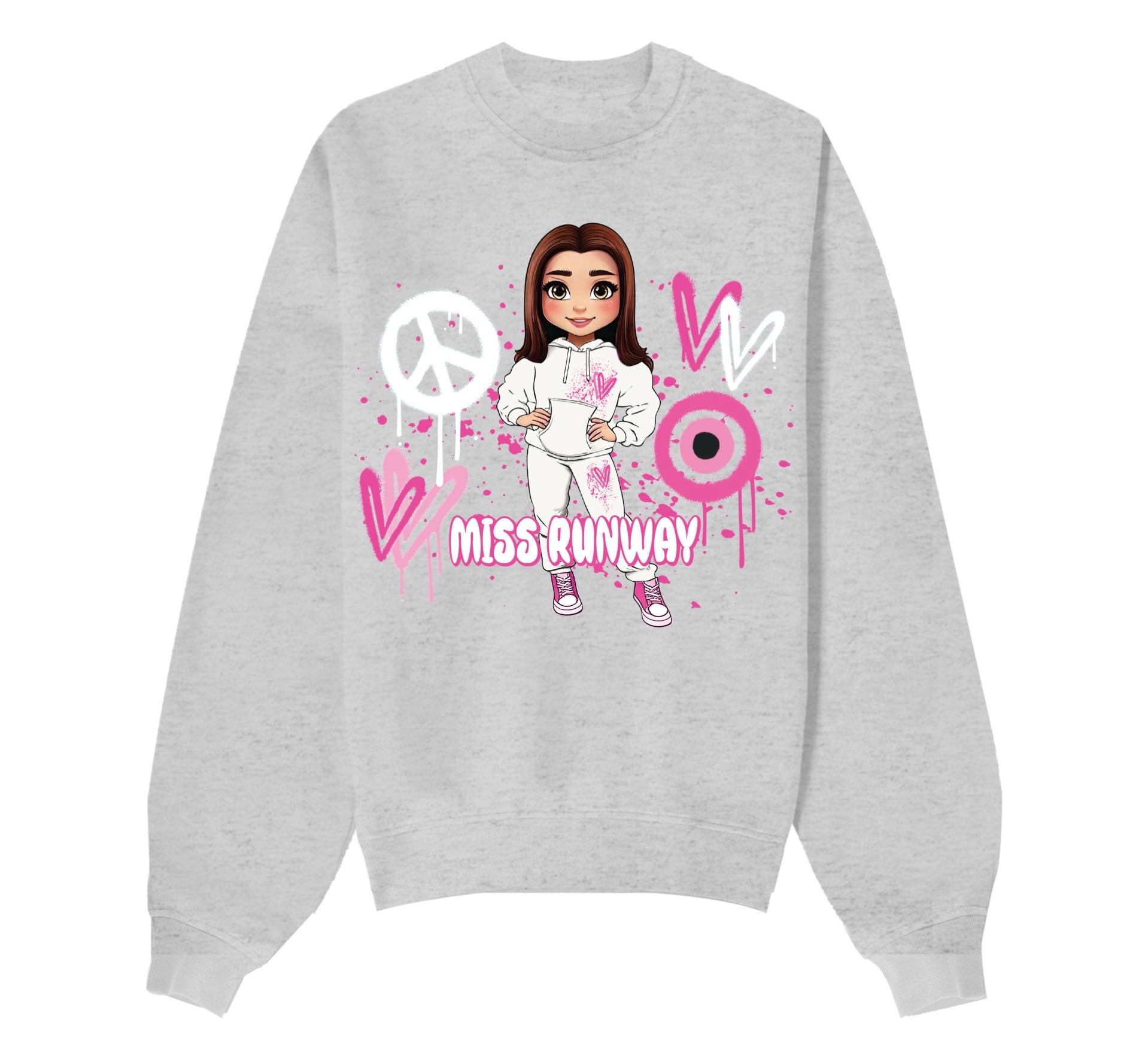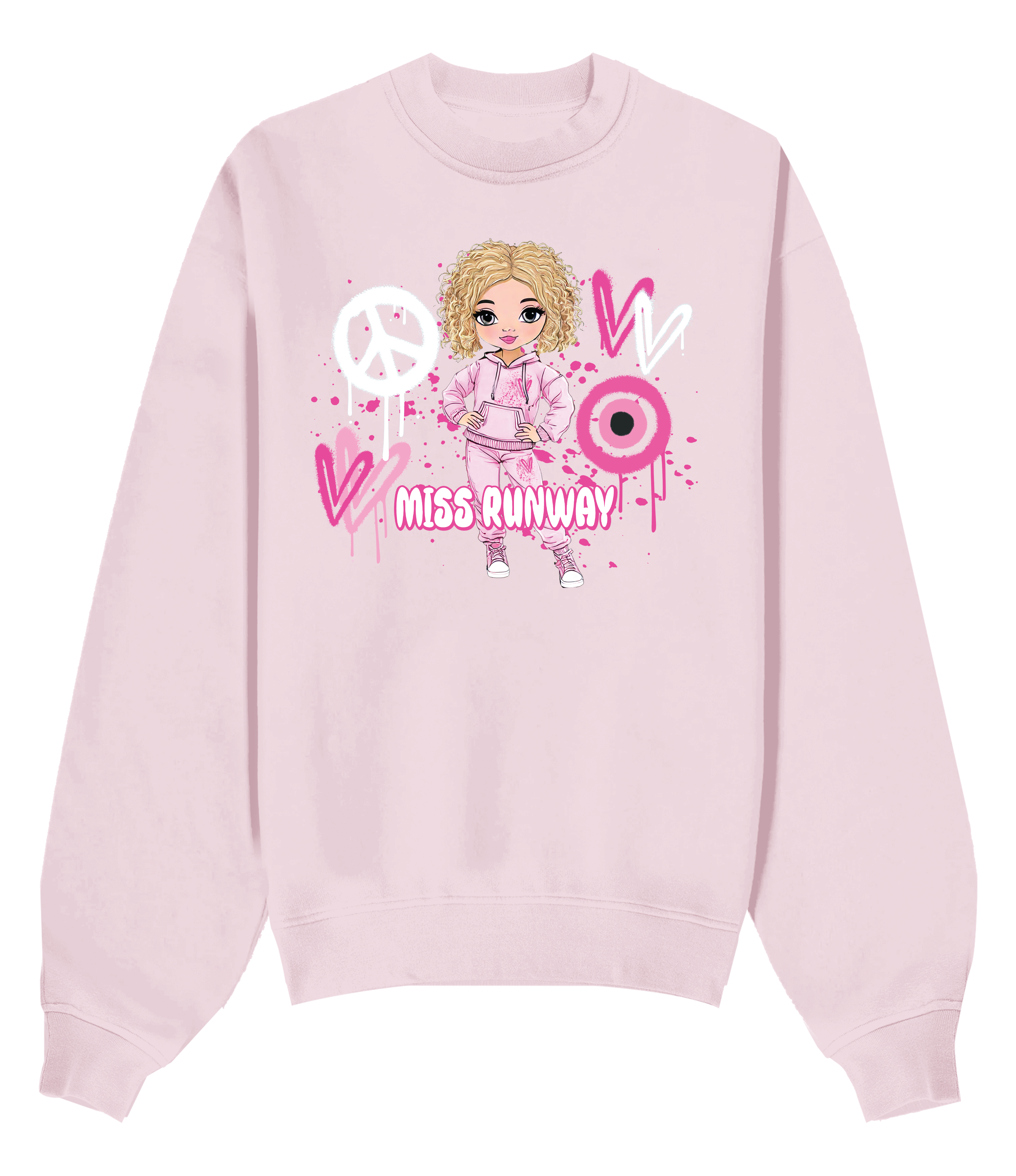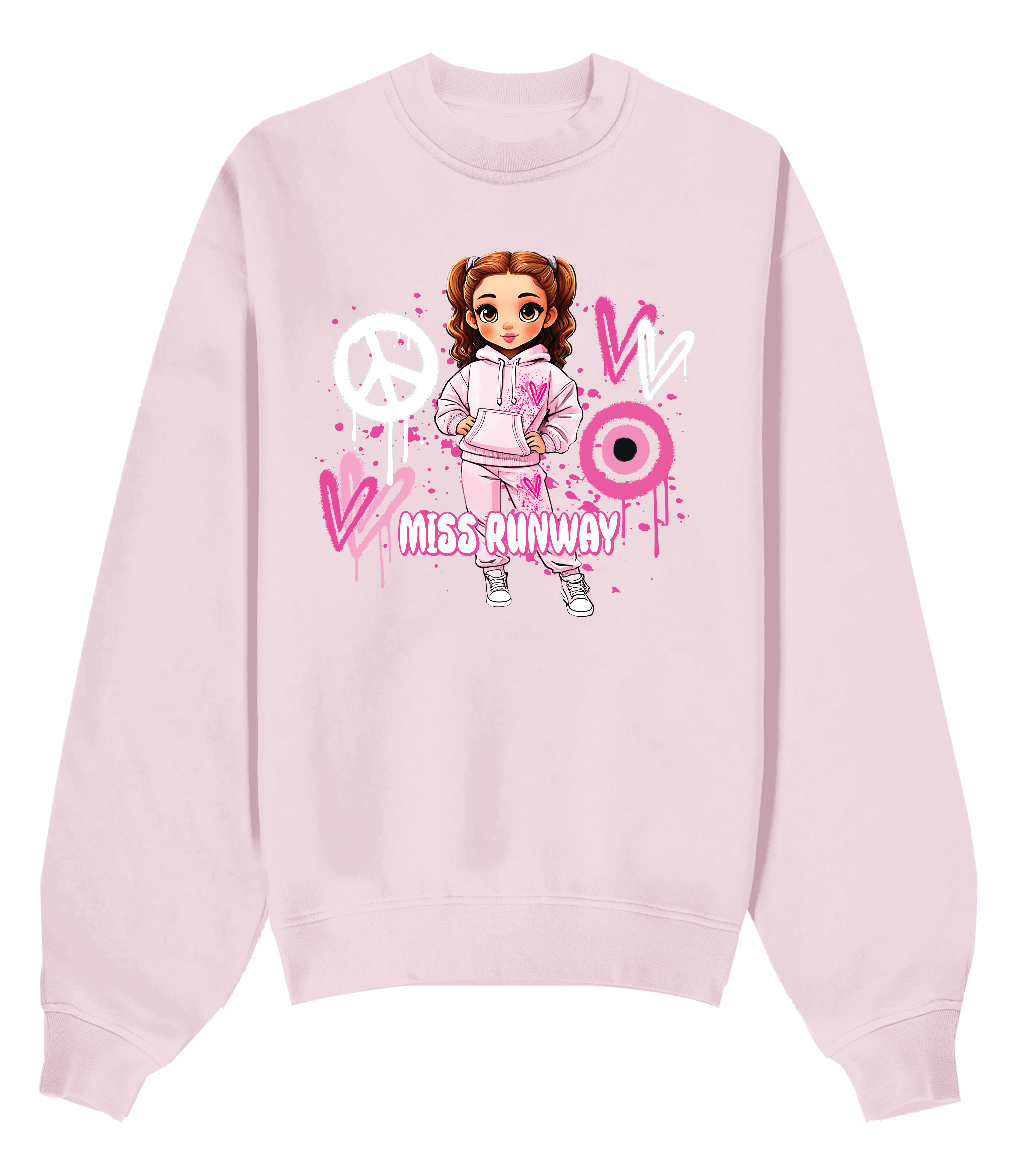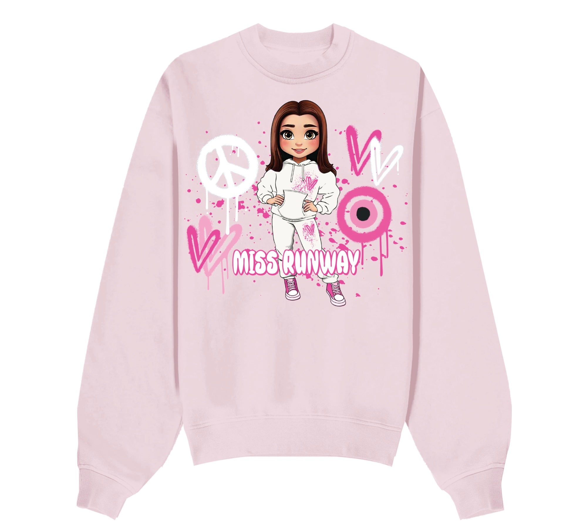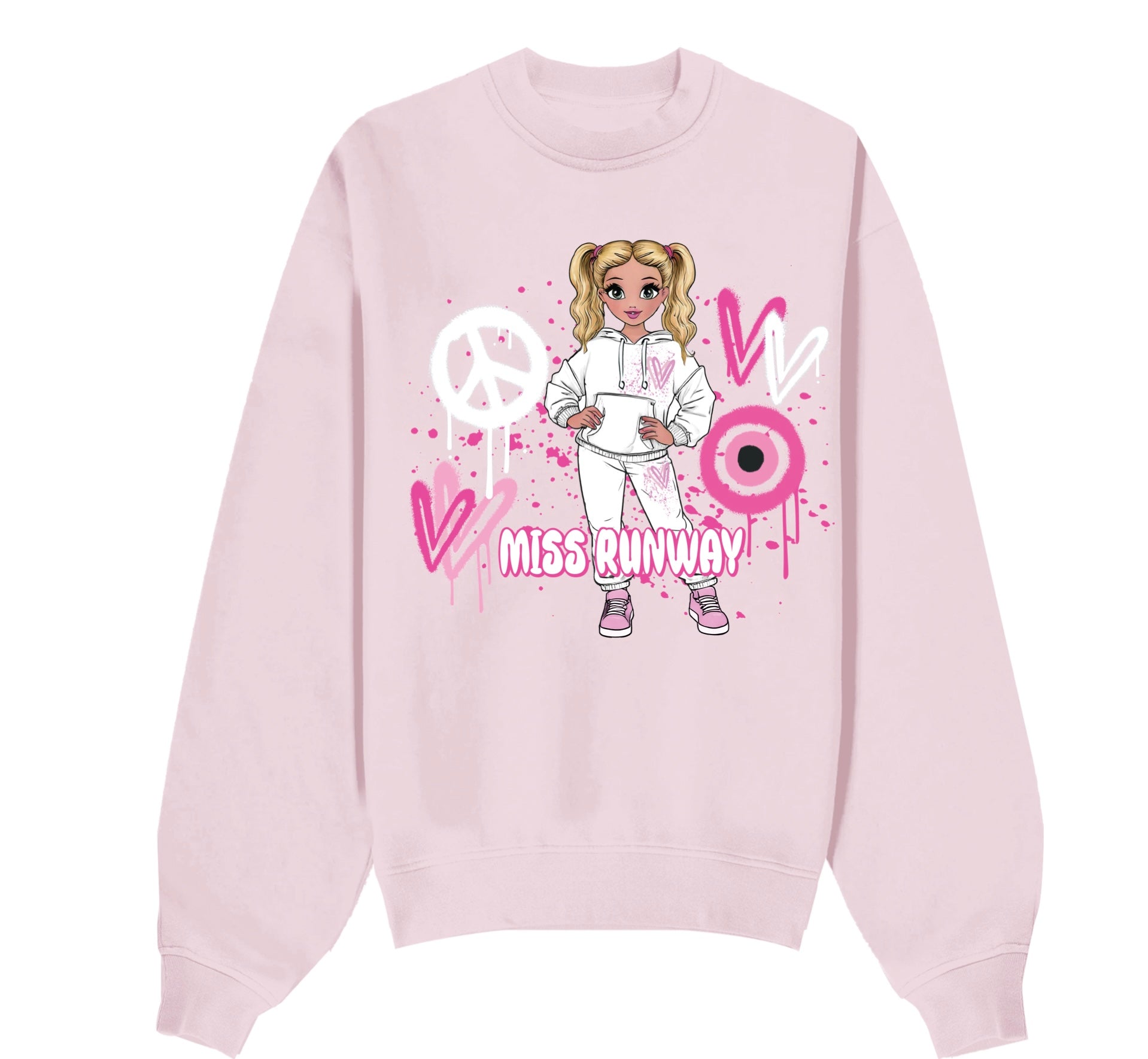 Miss Runway Doll Sweatshirt Pink Heart Design