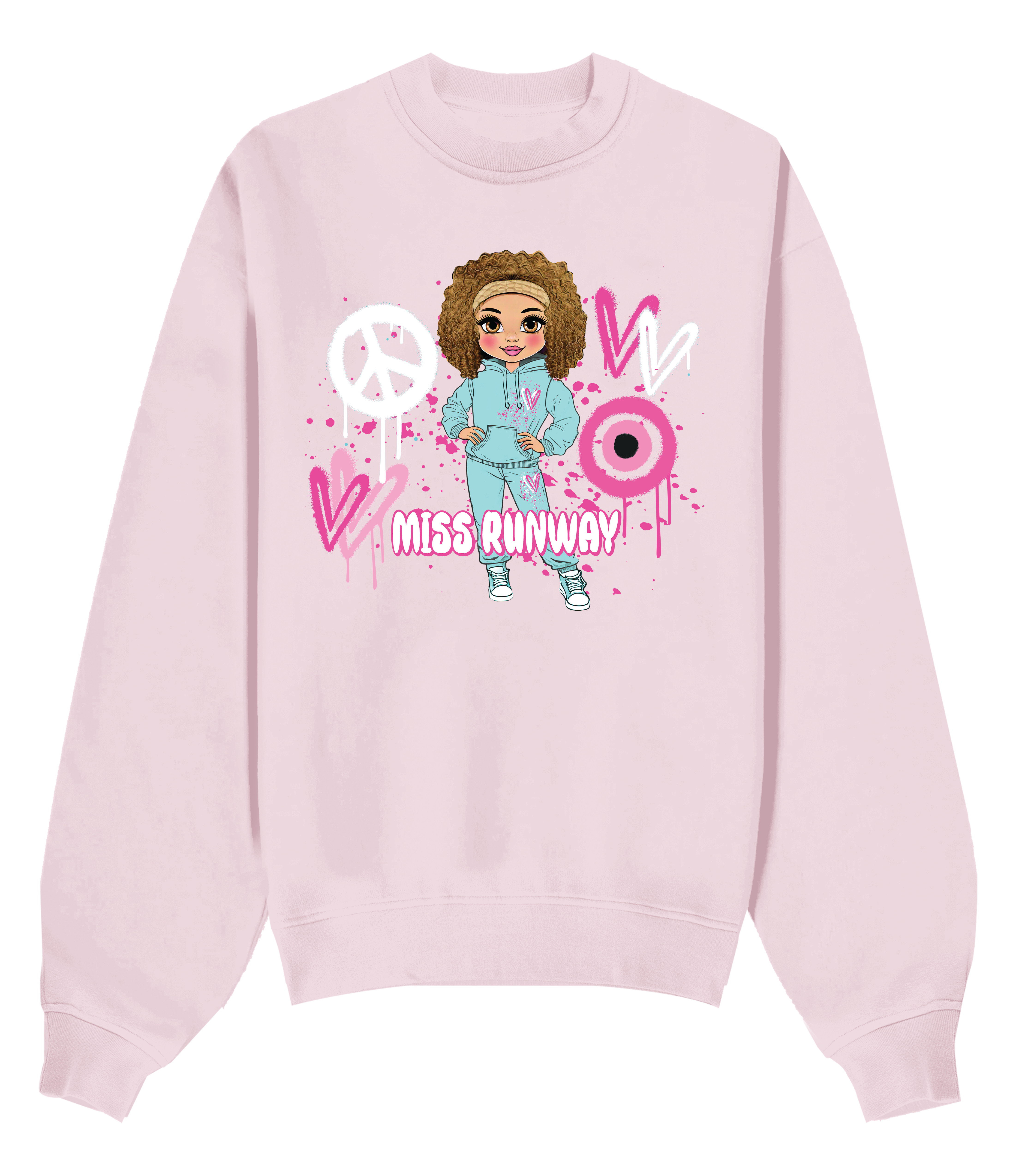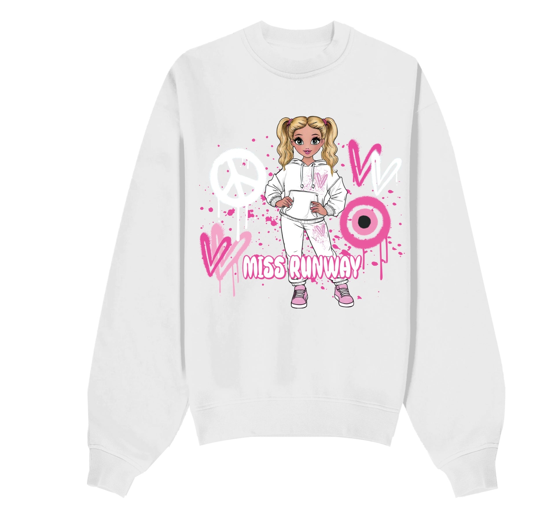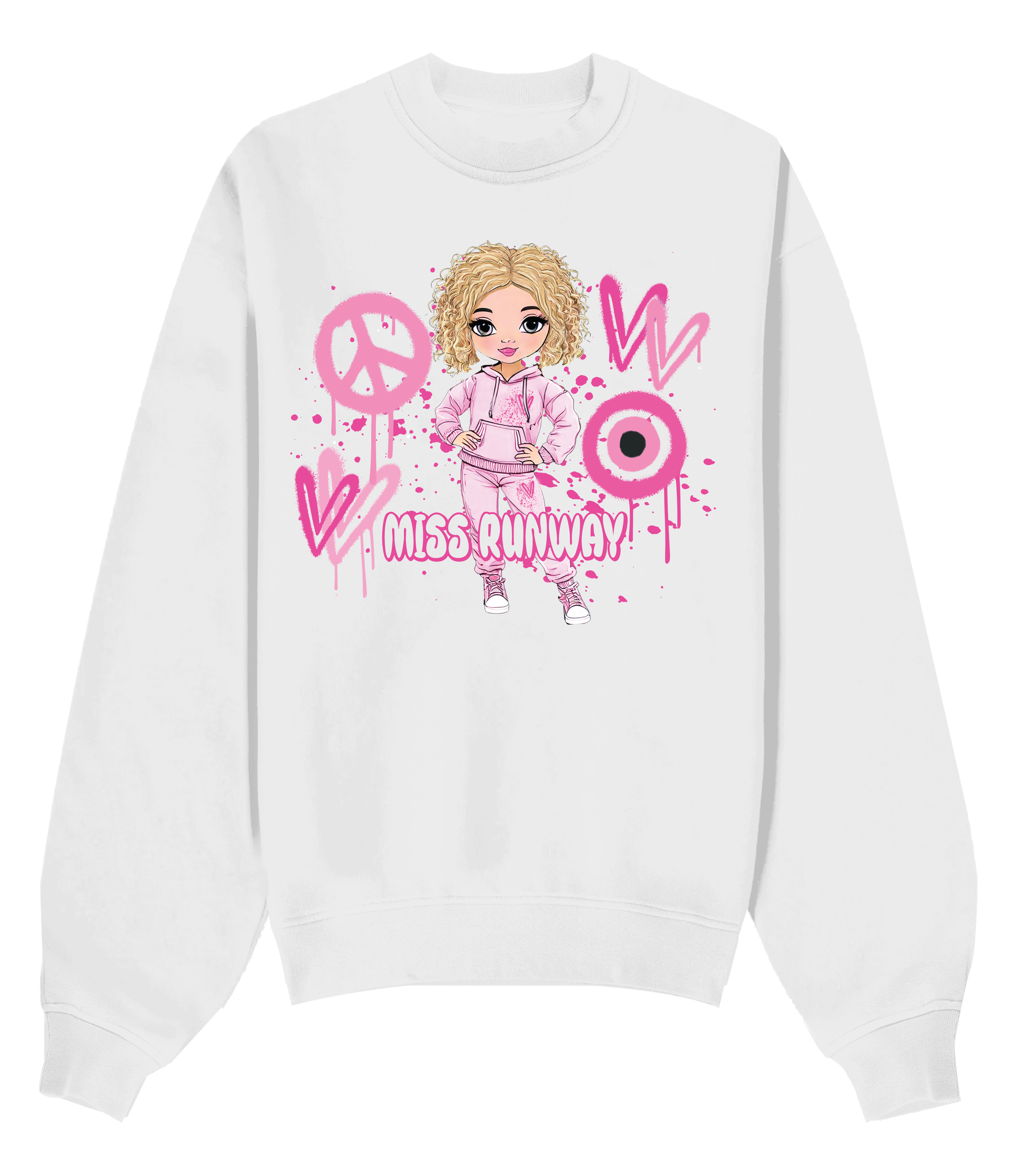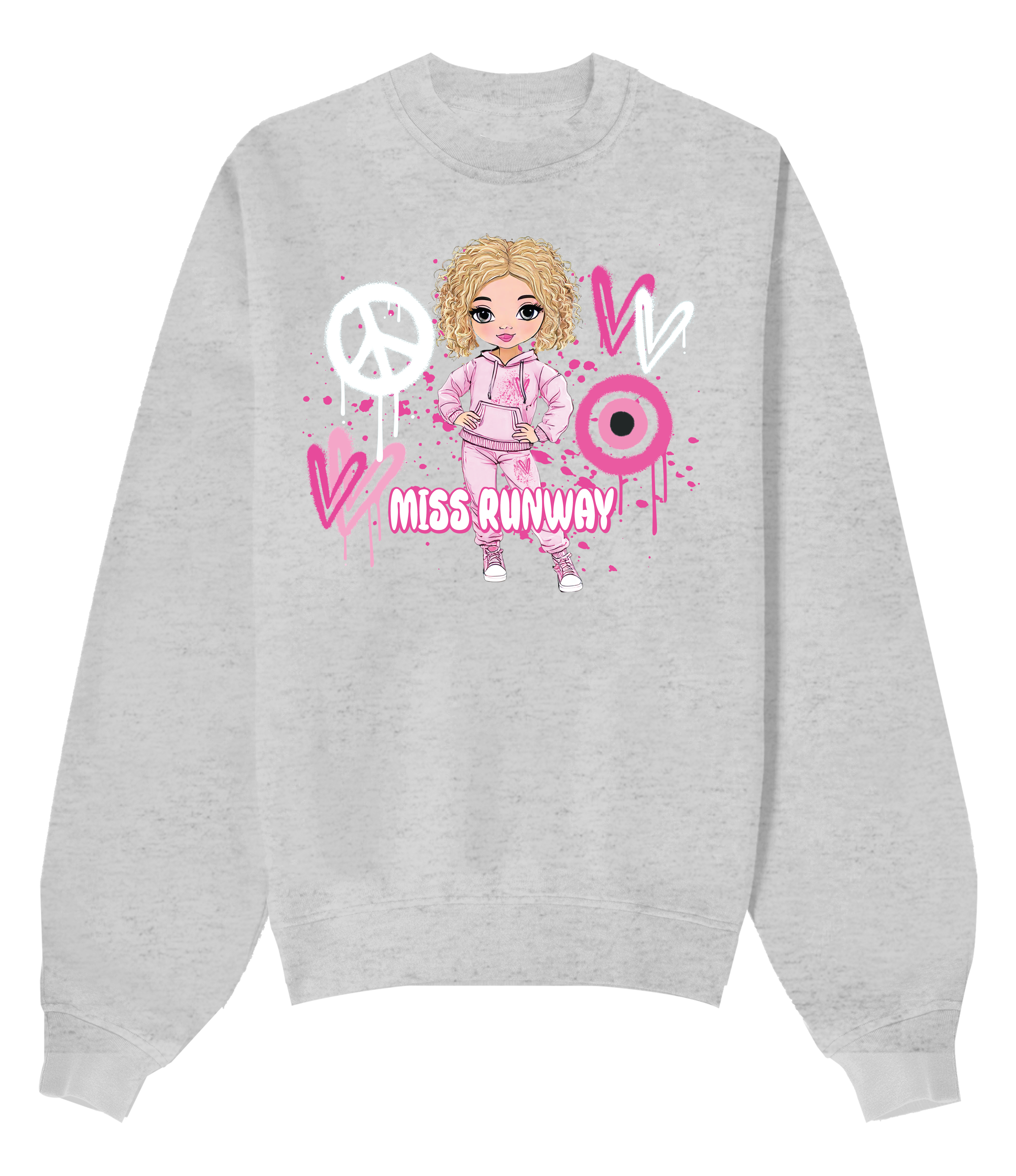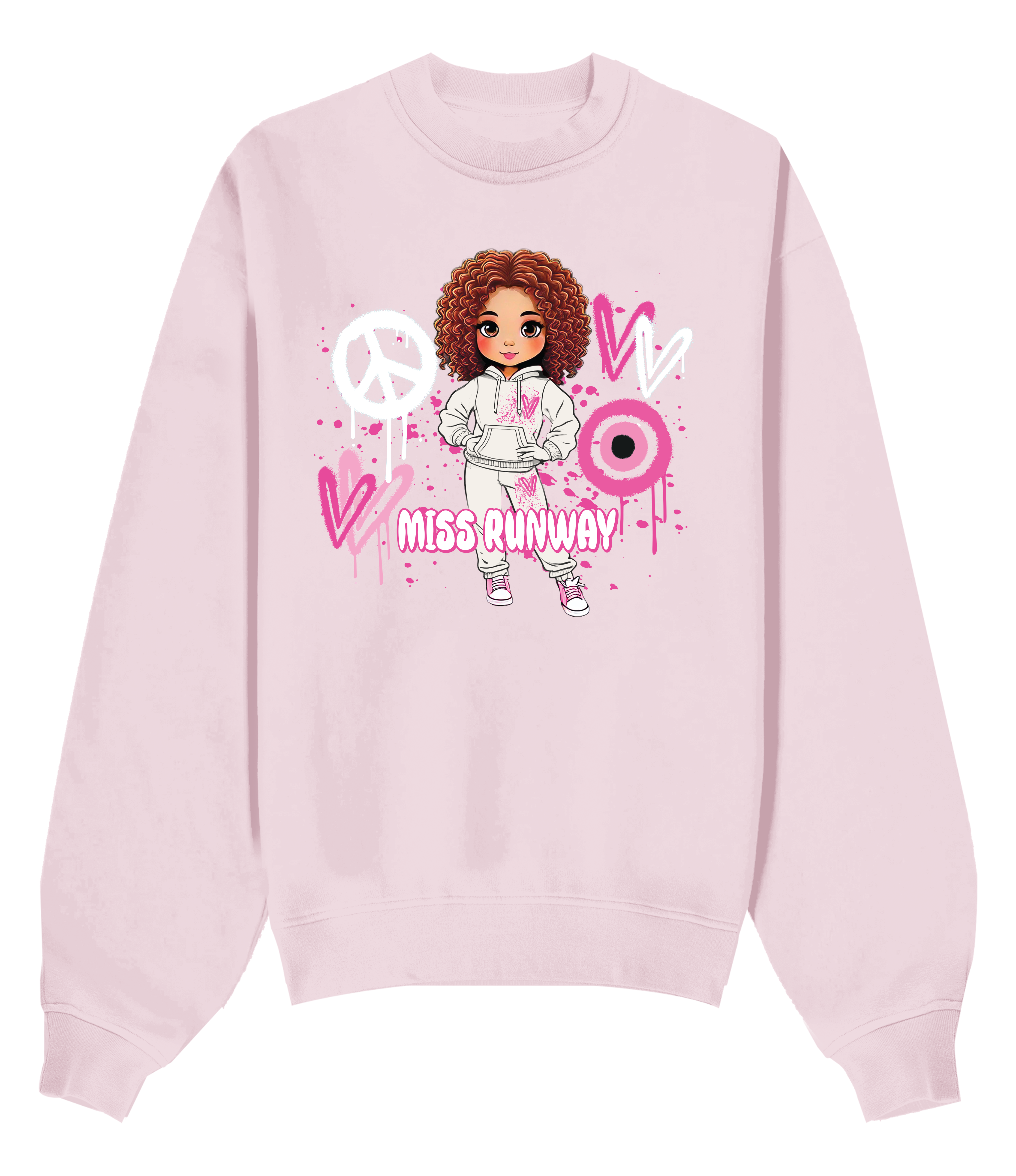 Miss Runway Doll Sweatshirt Pink Heart Design