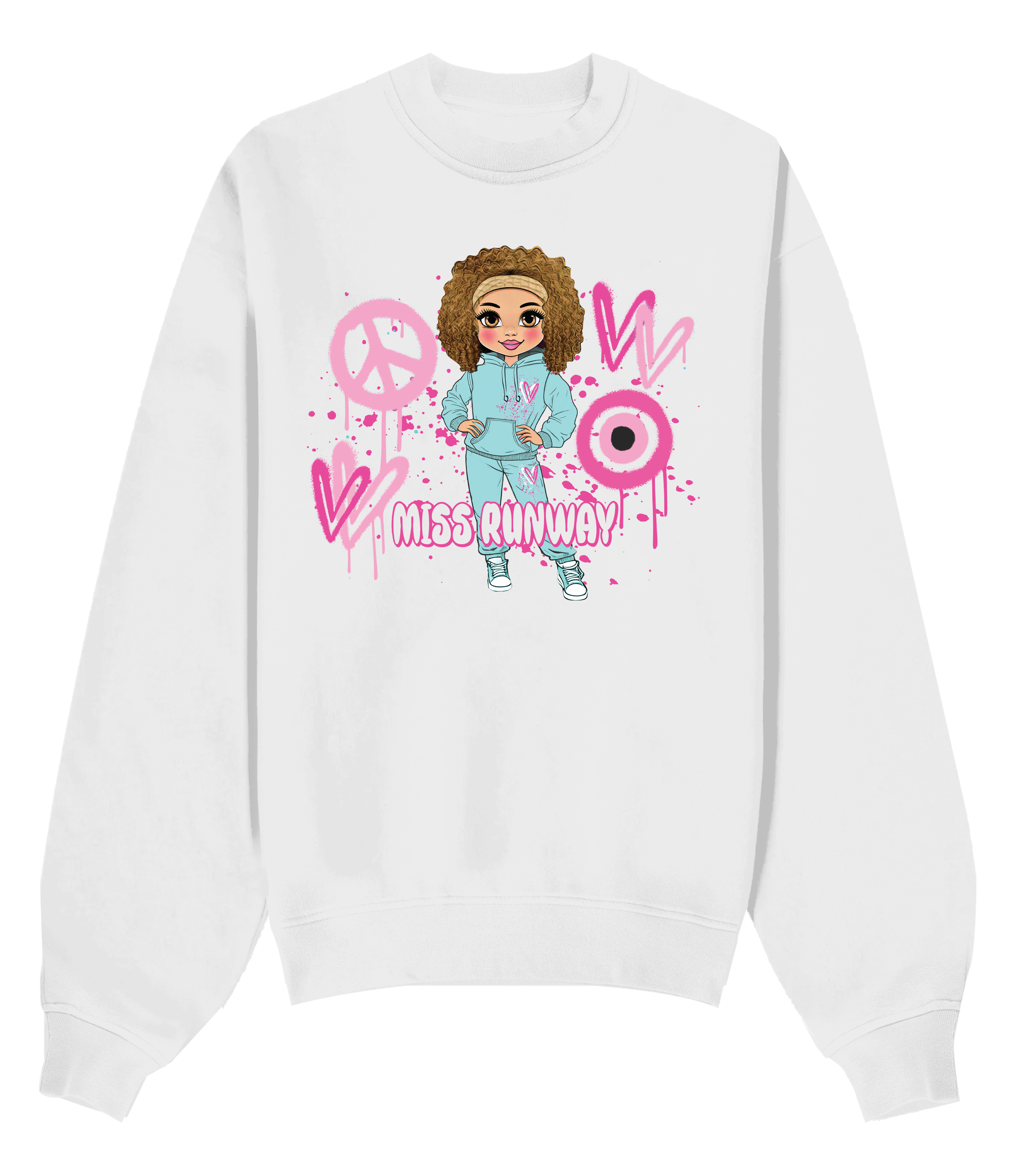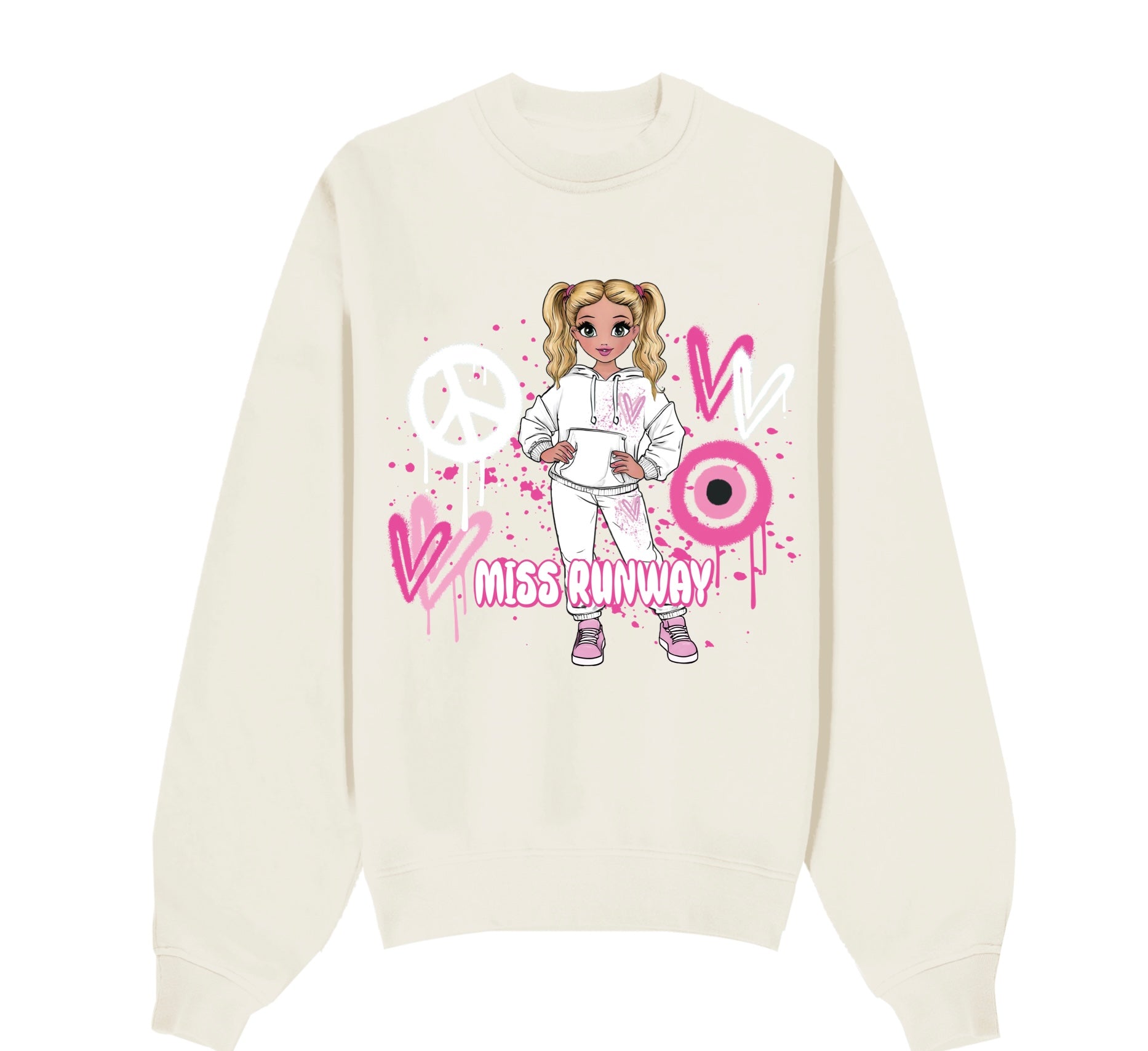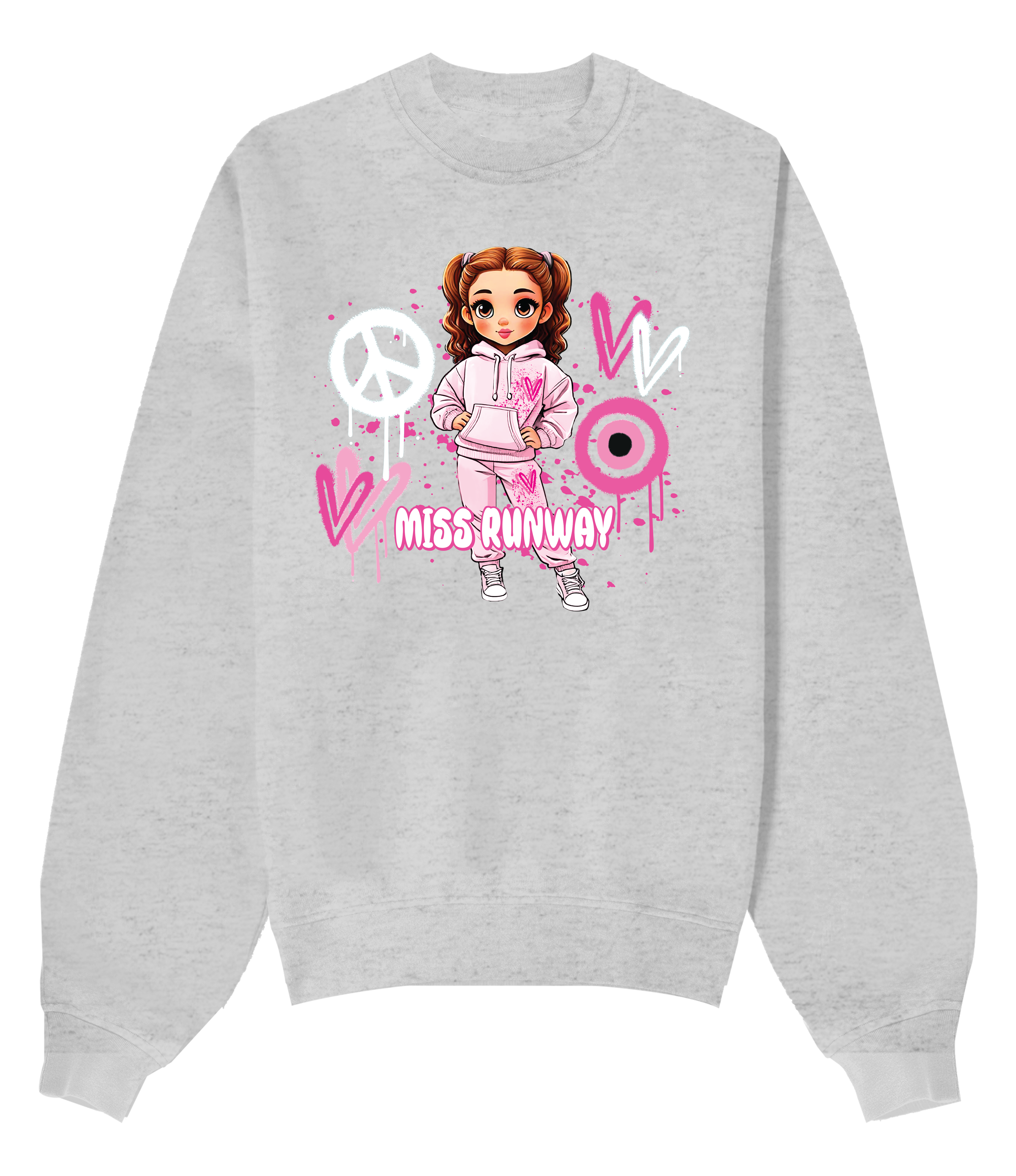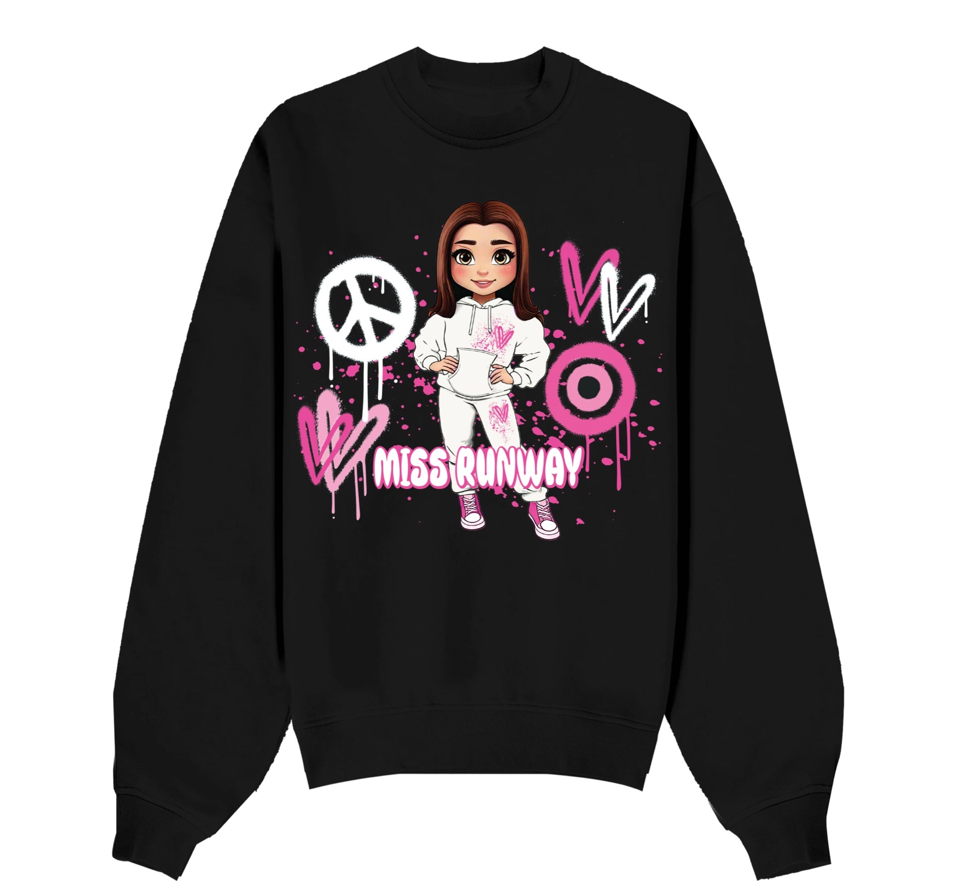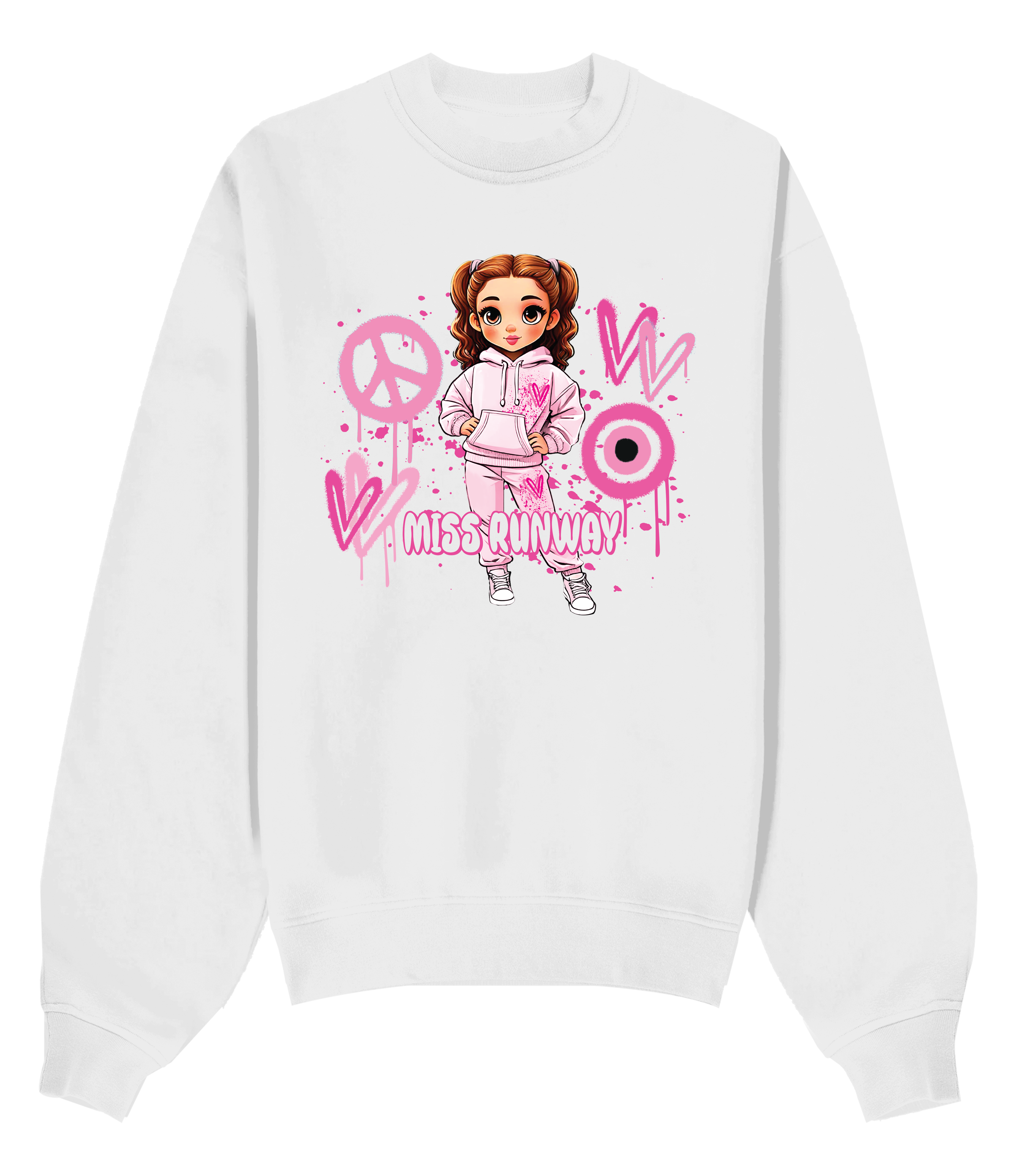 Miss Runway Doll Sweatshirt Pink Heart Design