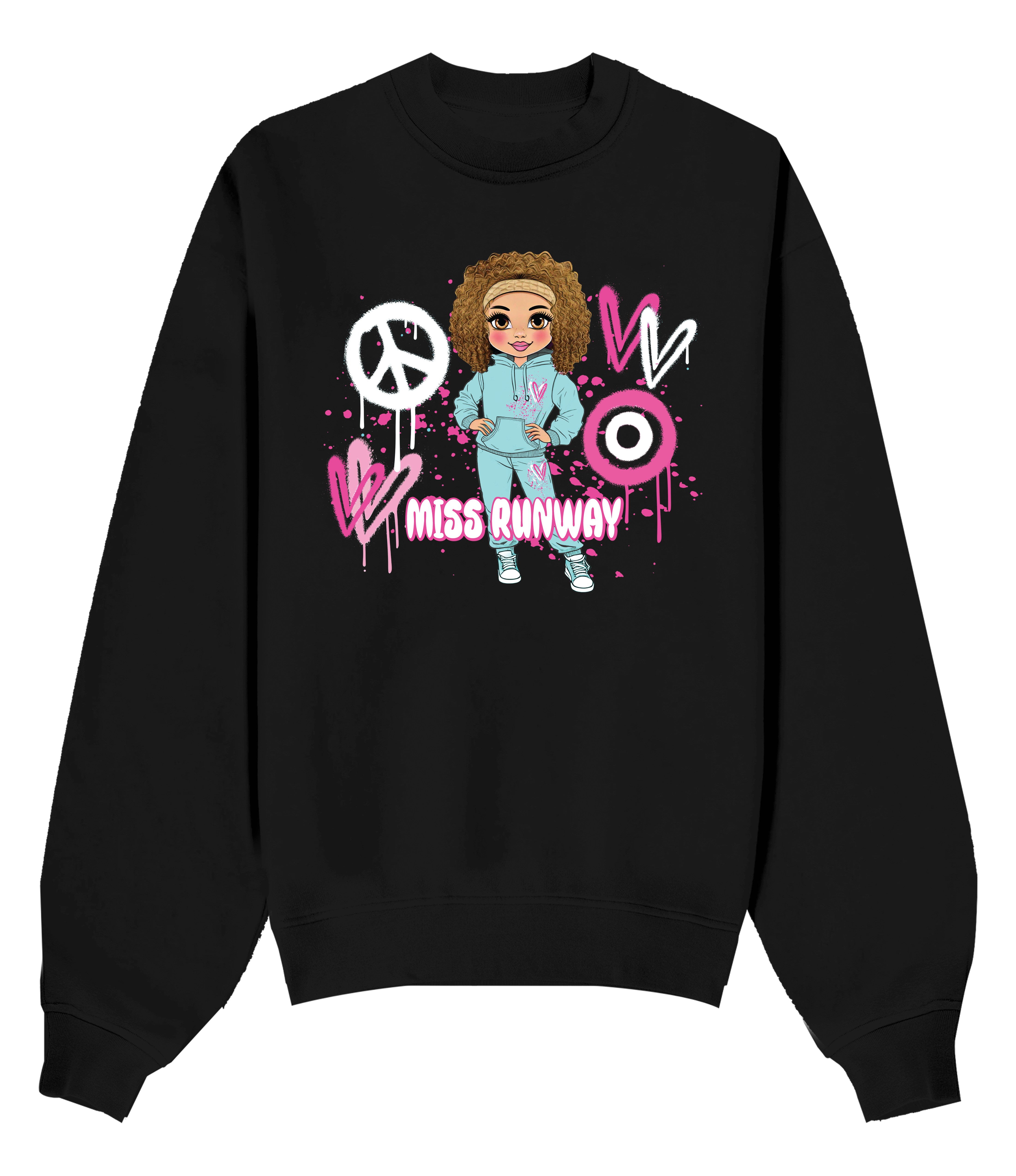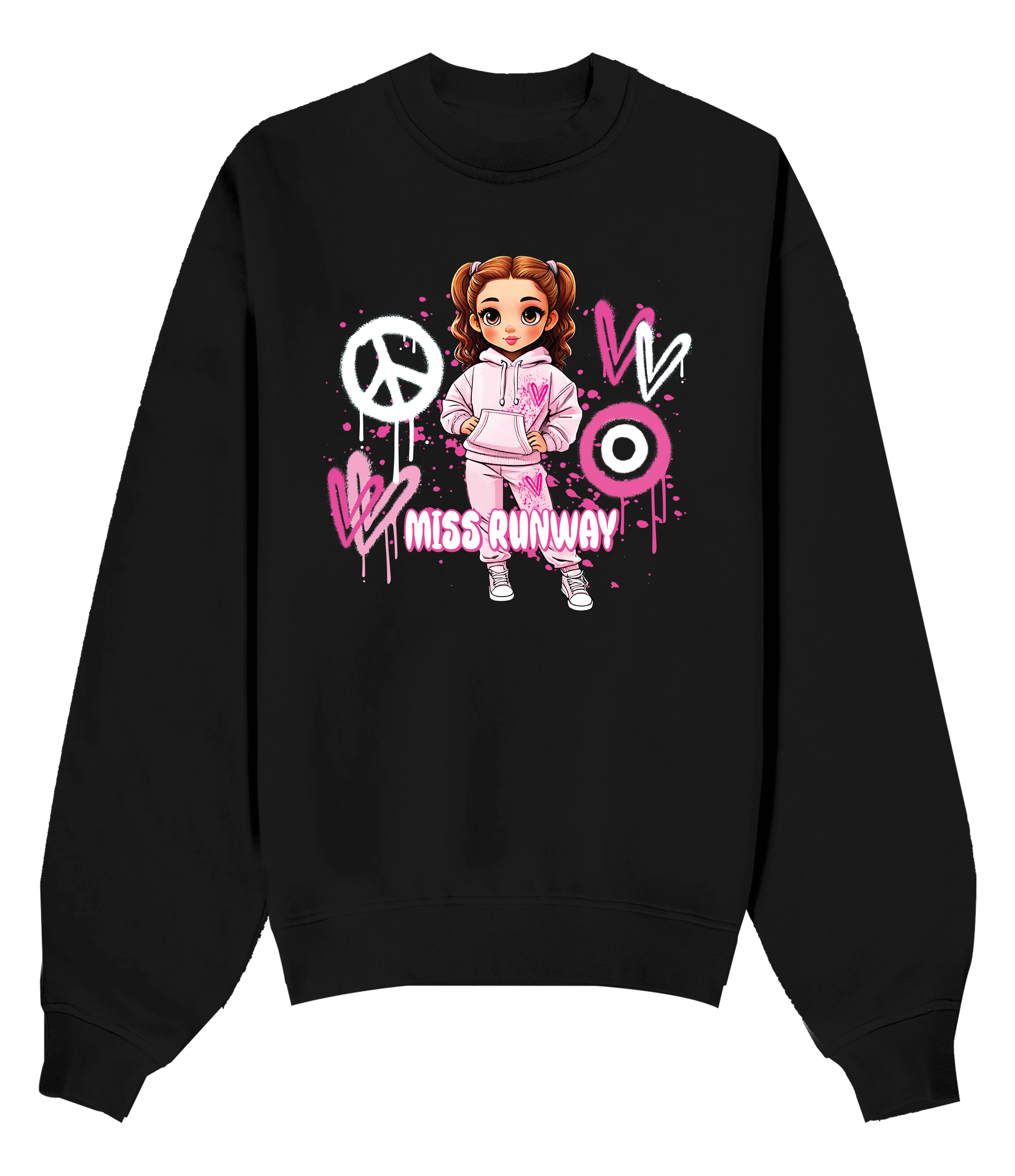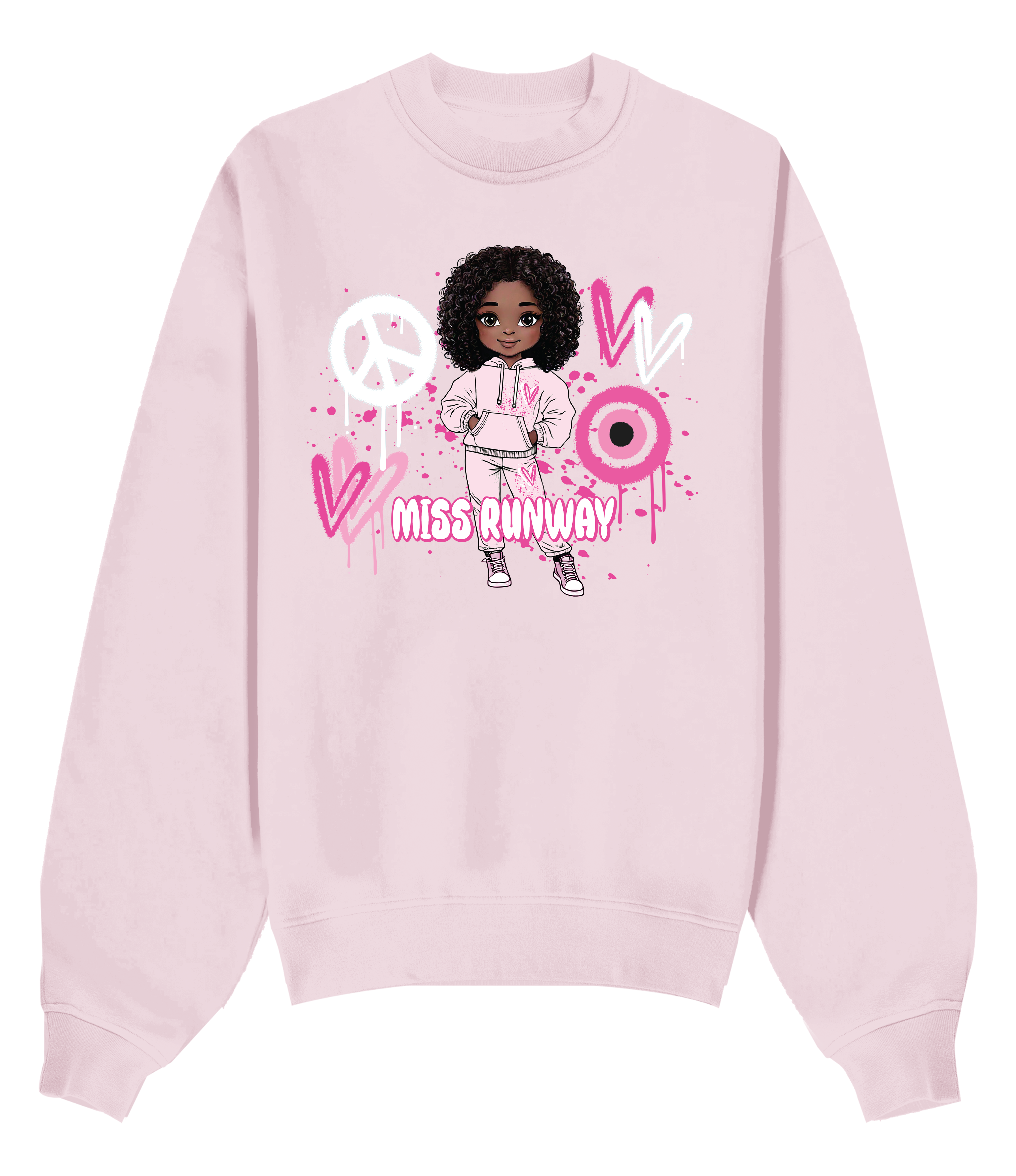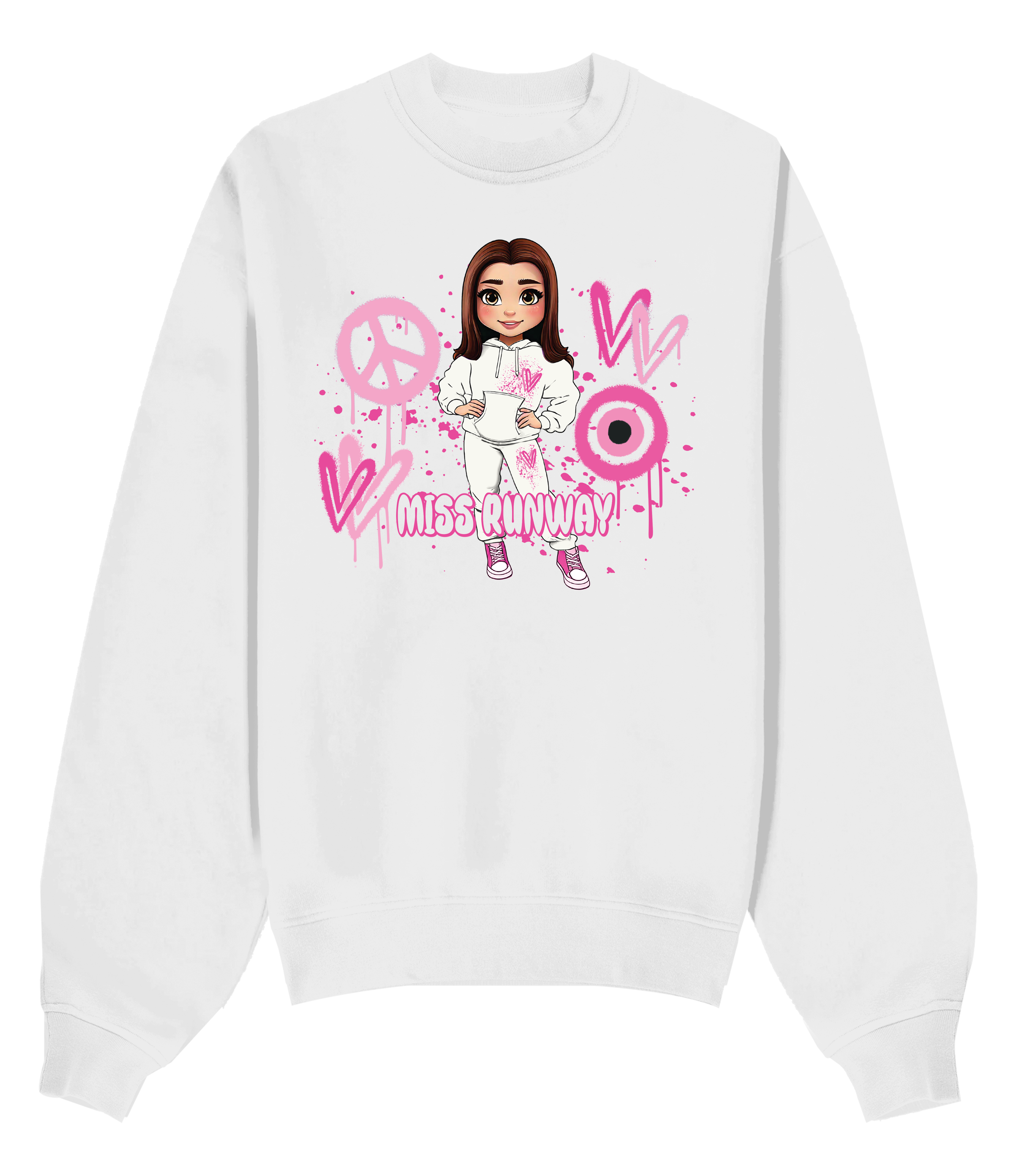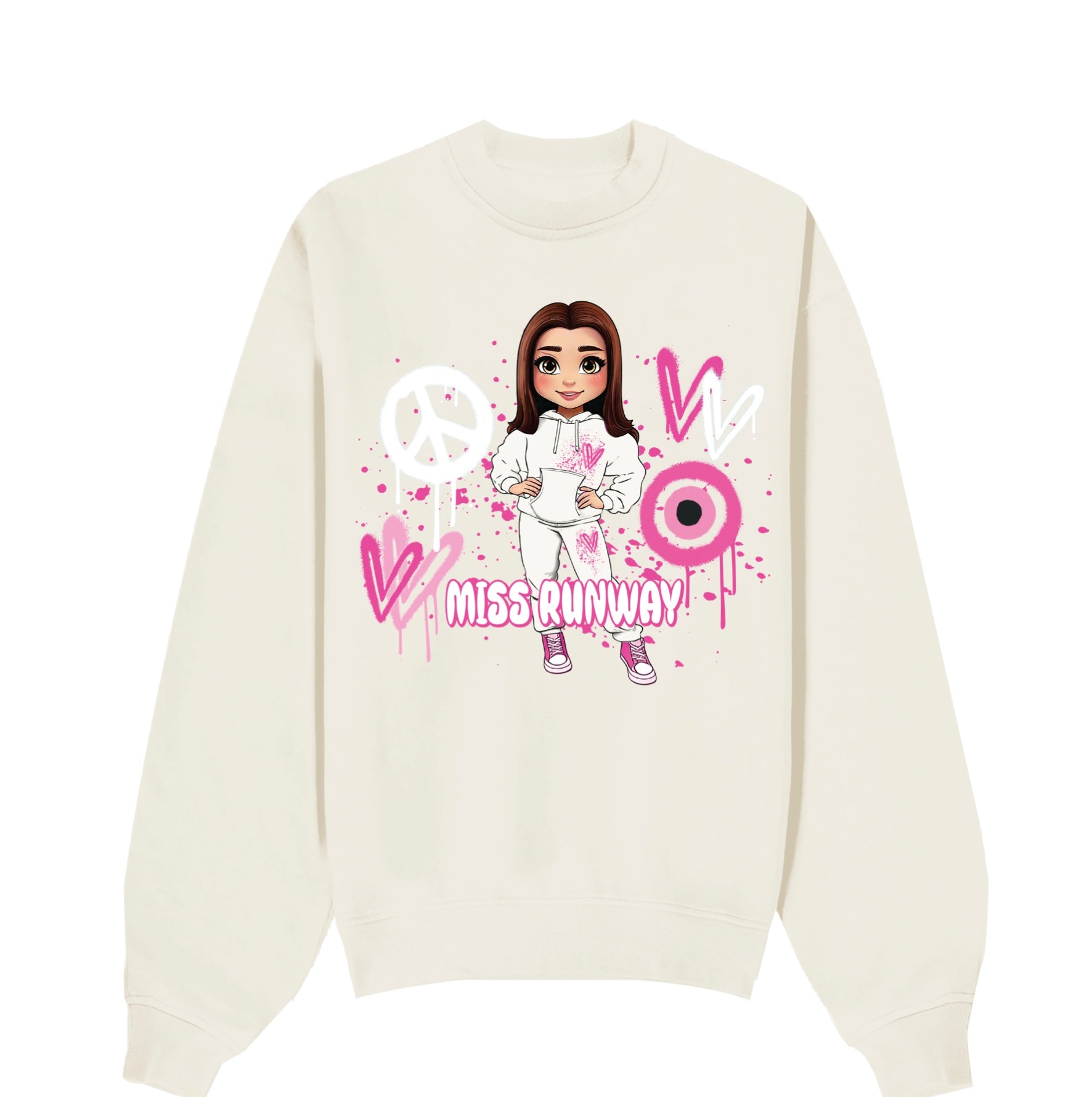 Miss Runway Doll Sweatshirt Pink Heart Design