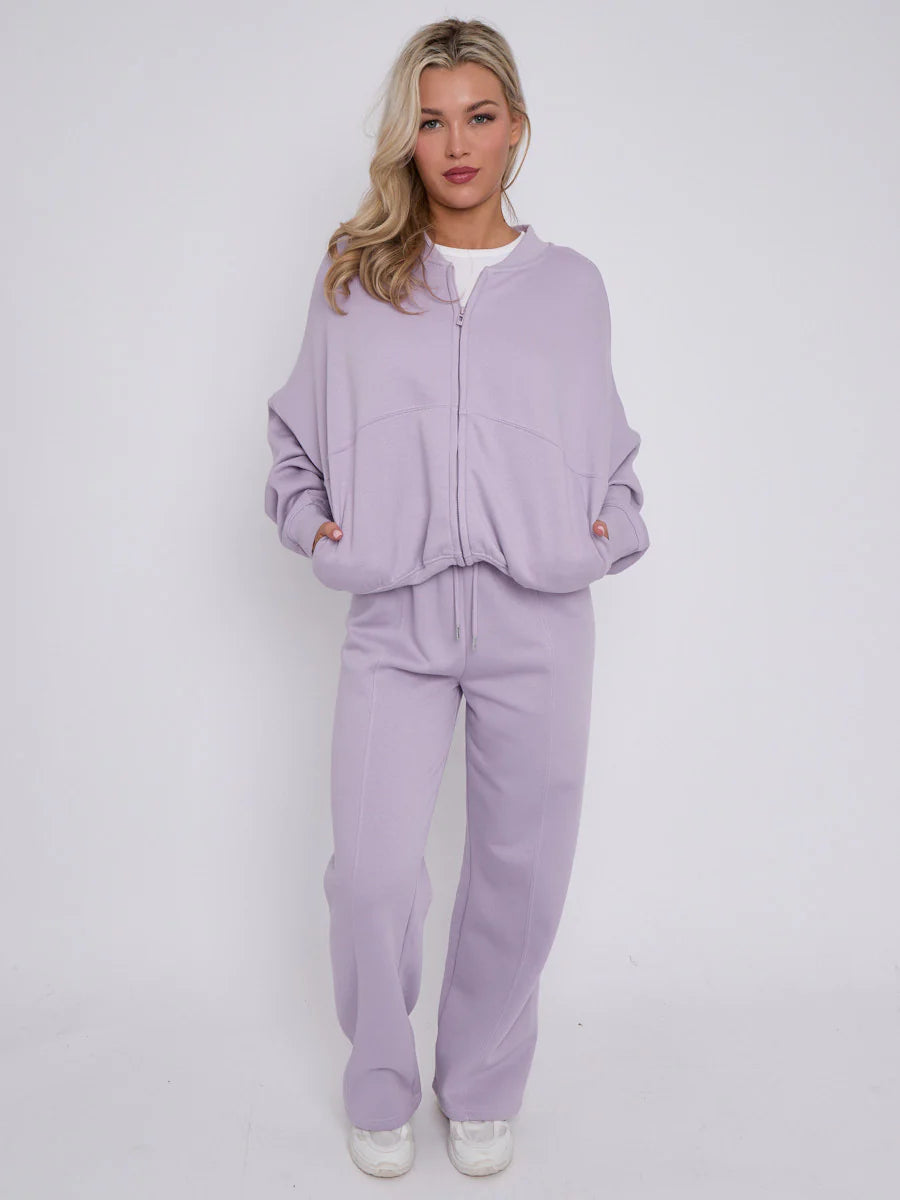 Oversized Bomber Style Fleece Zipper Co-ord Lilac