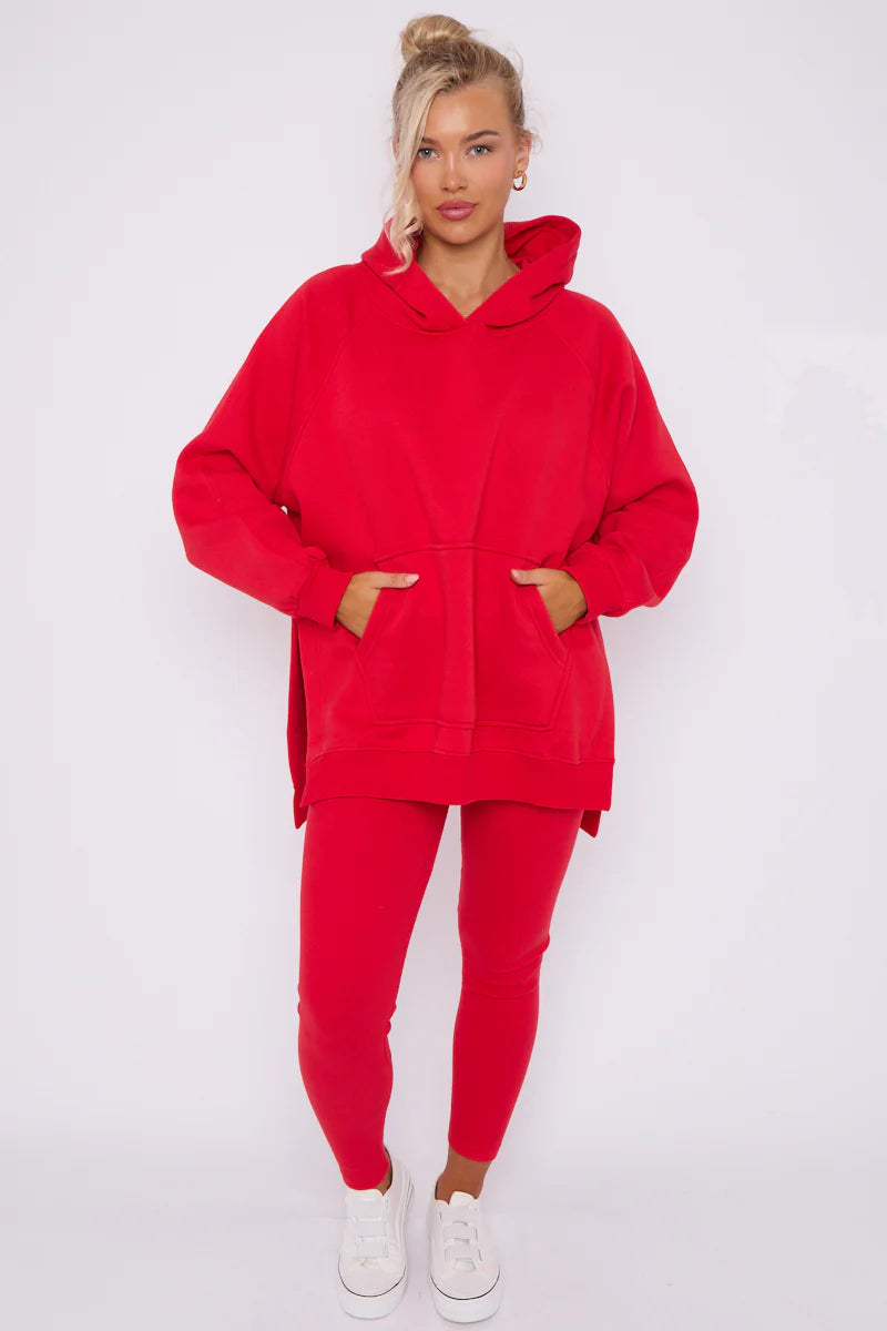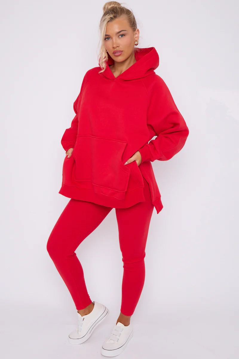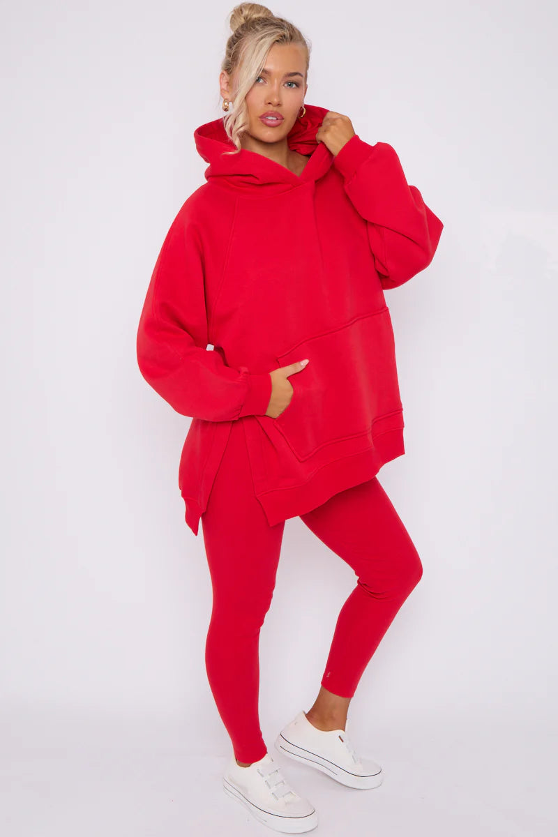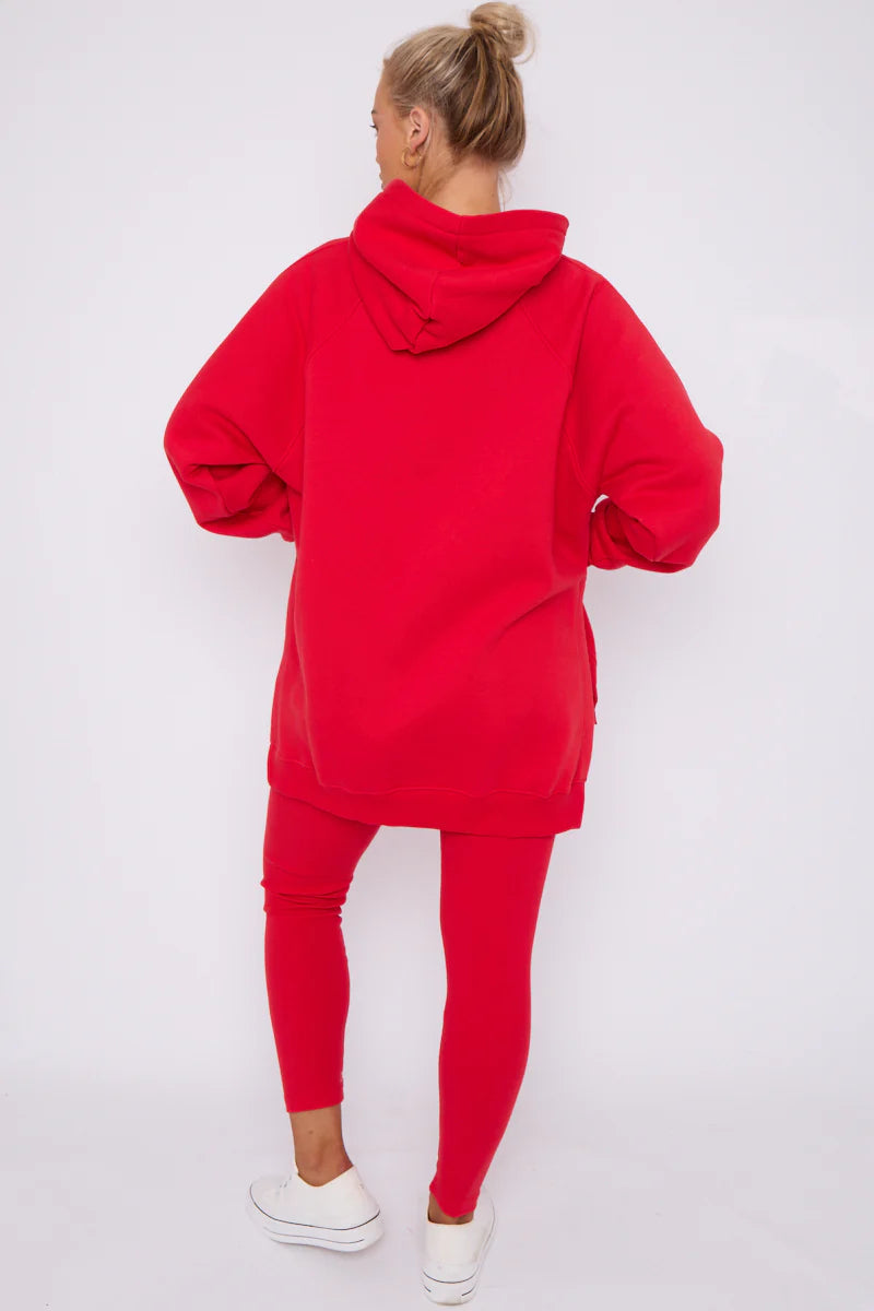 Oversized Split Sides Hoodie & Legging Co-Ord Red