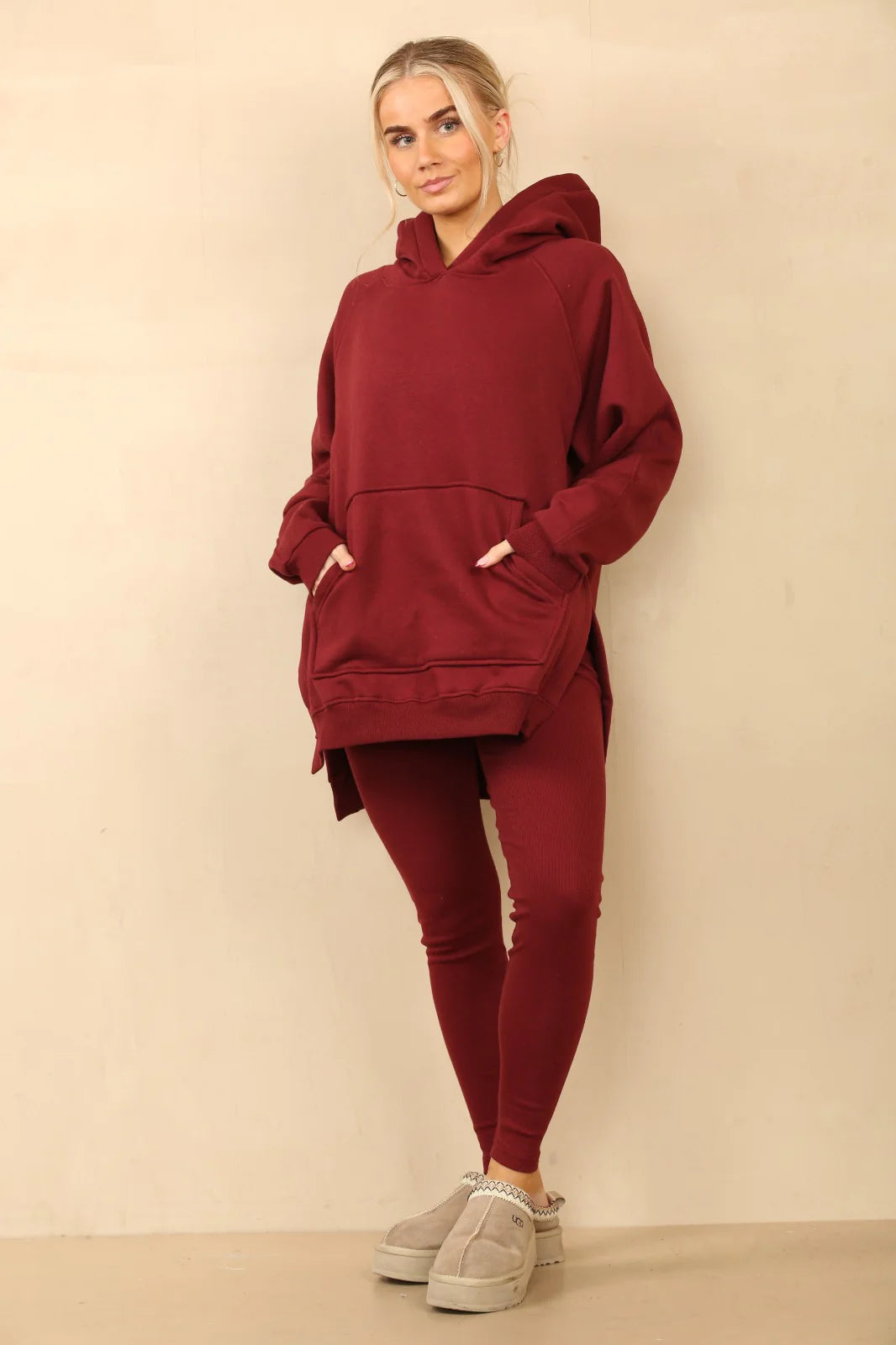 Oversized Split Sides Hoodie & Legging Co-Ord Burgundy