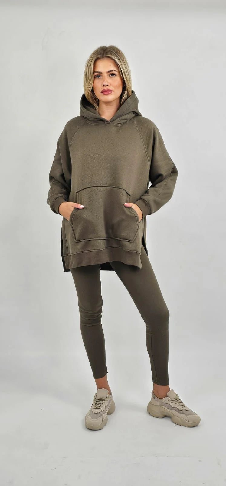 Oversized Split Sides Hoodie & Legging Co-Ord Khaki