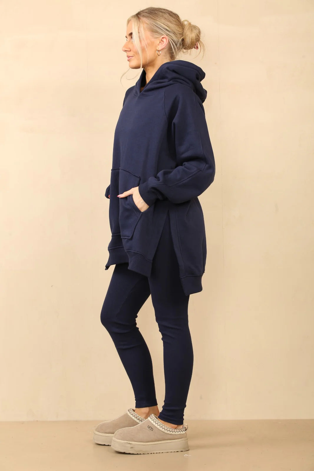 Oversized Split Sides Hoodie & Legging Co-Ord Navy