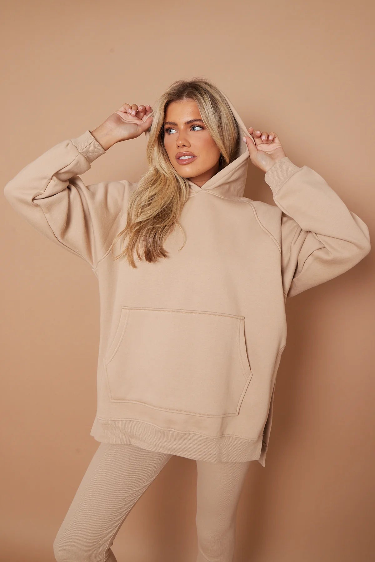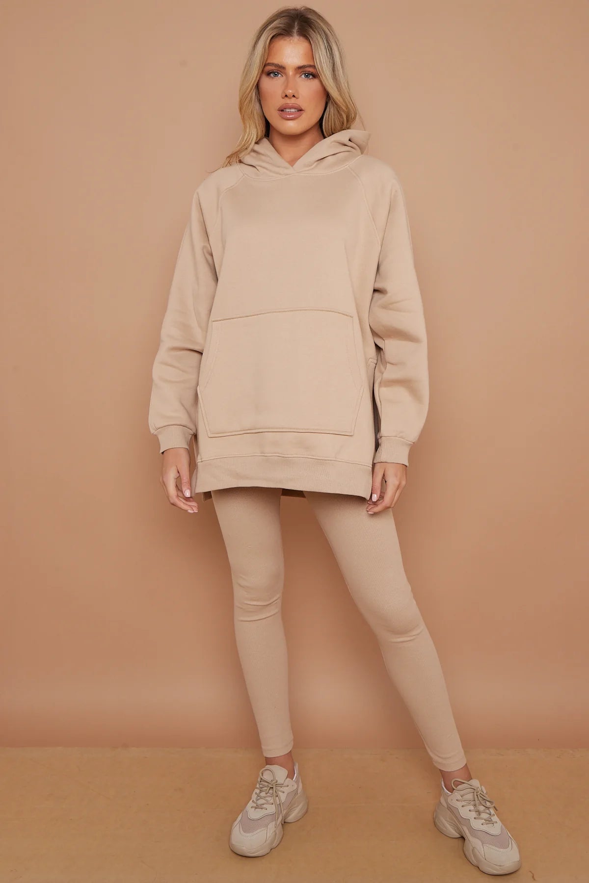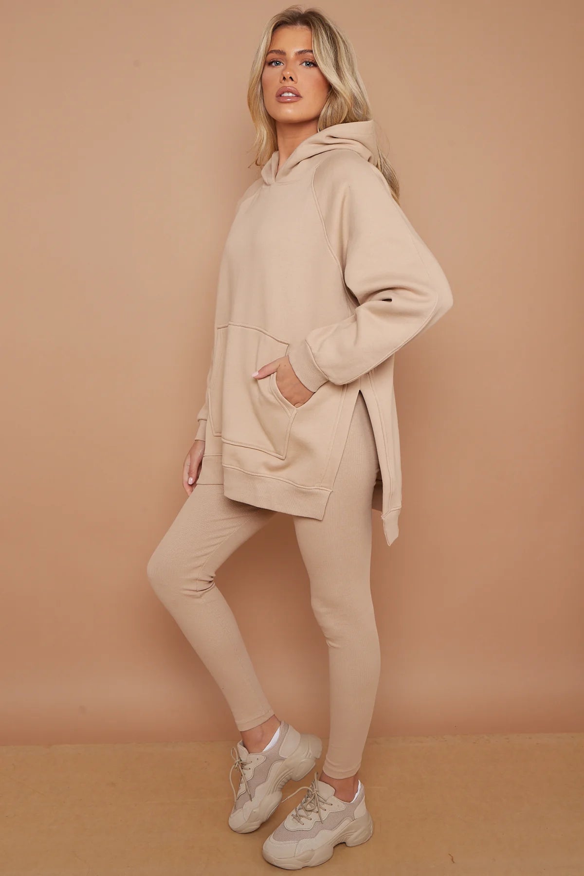 Oversized Split Sides Hoodie & Legging Co-Ord Beige