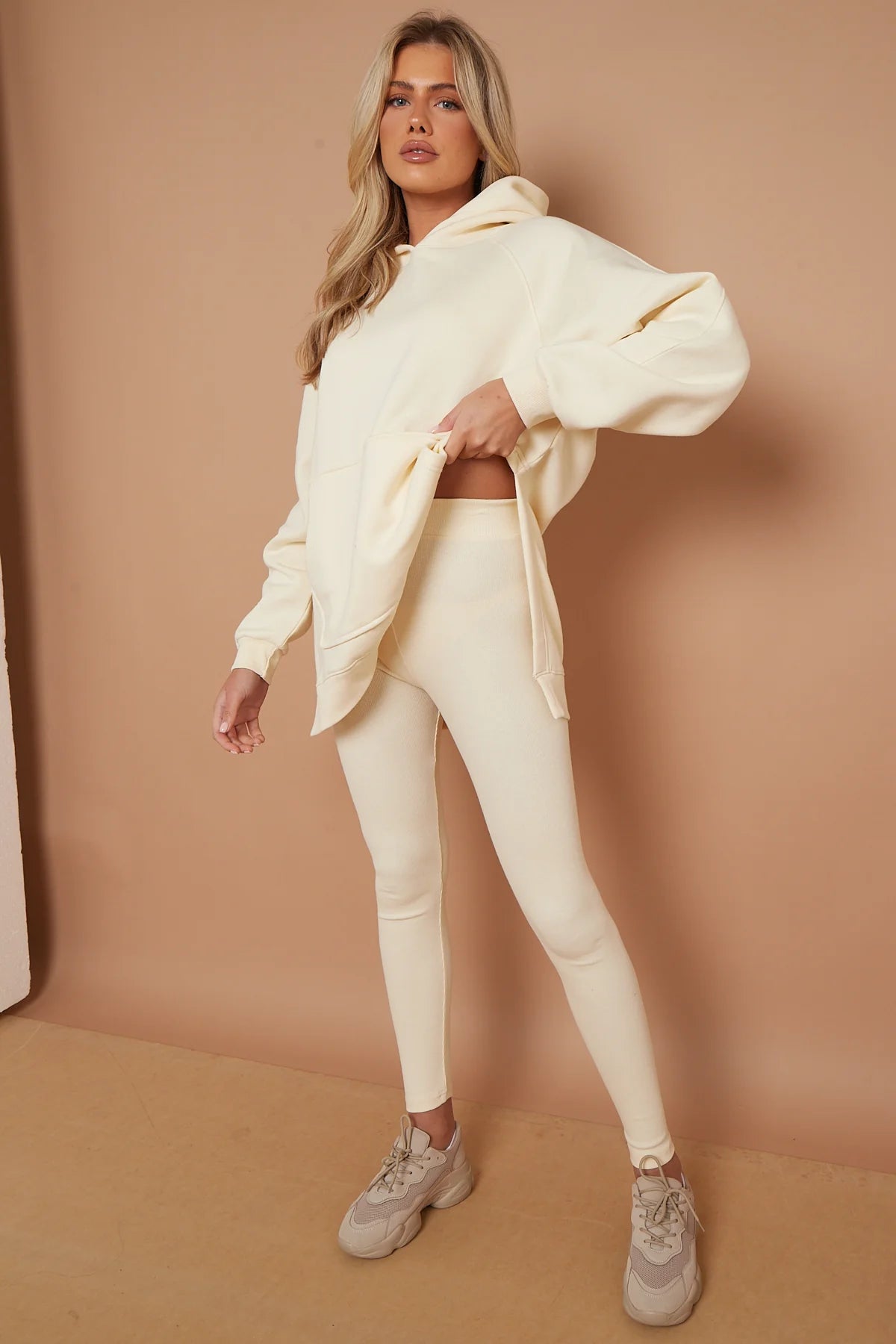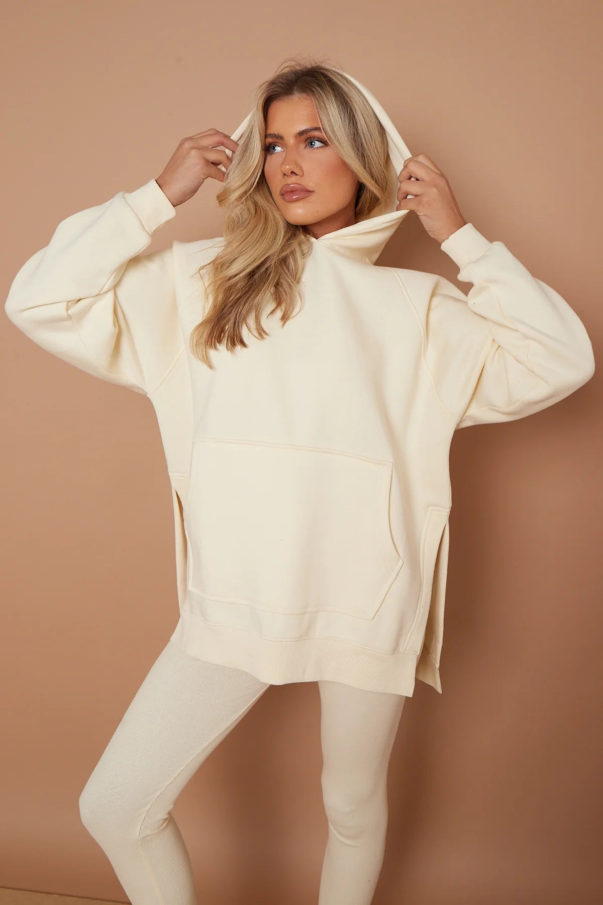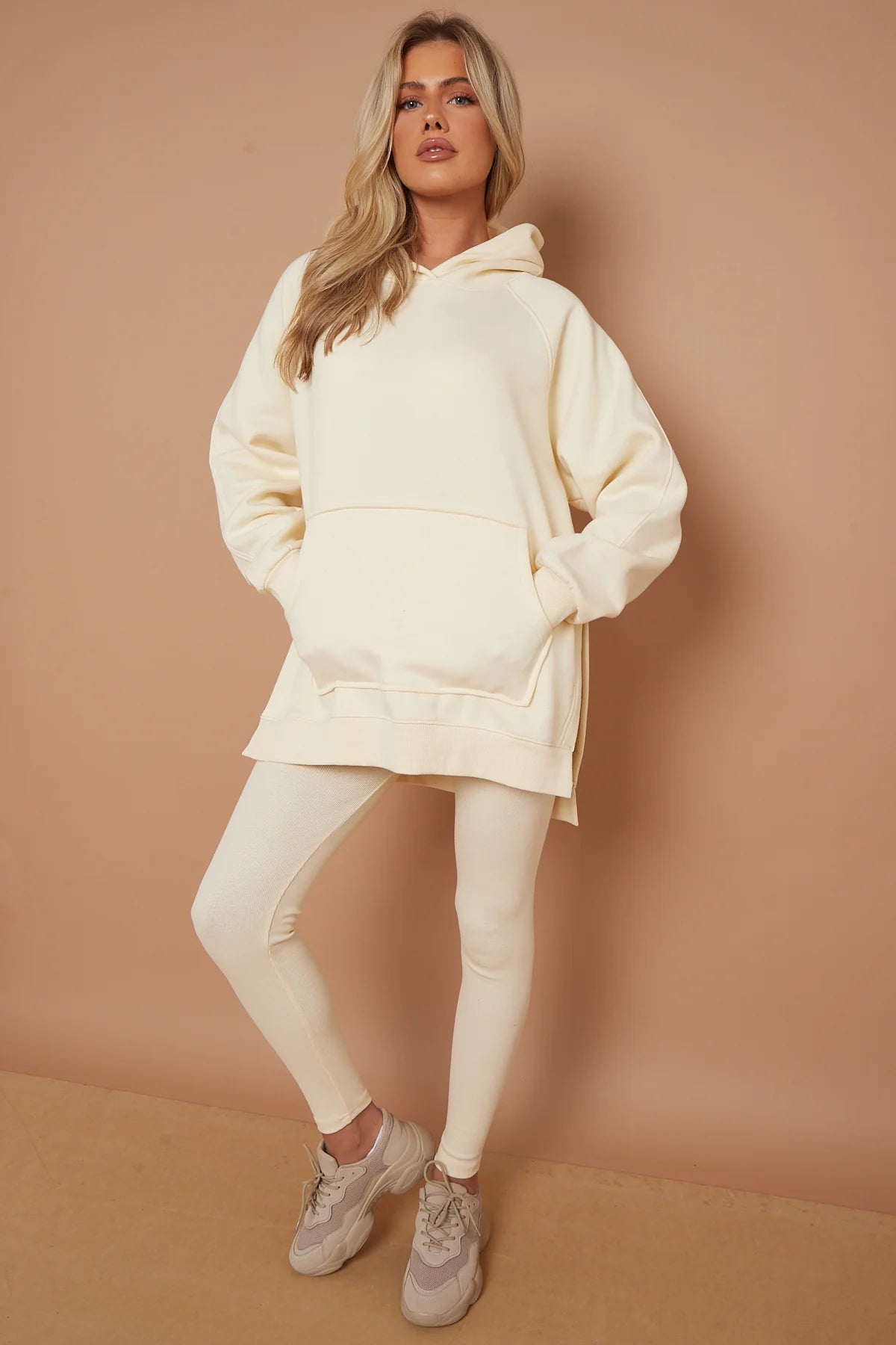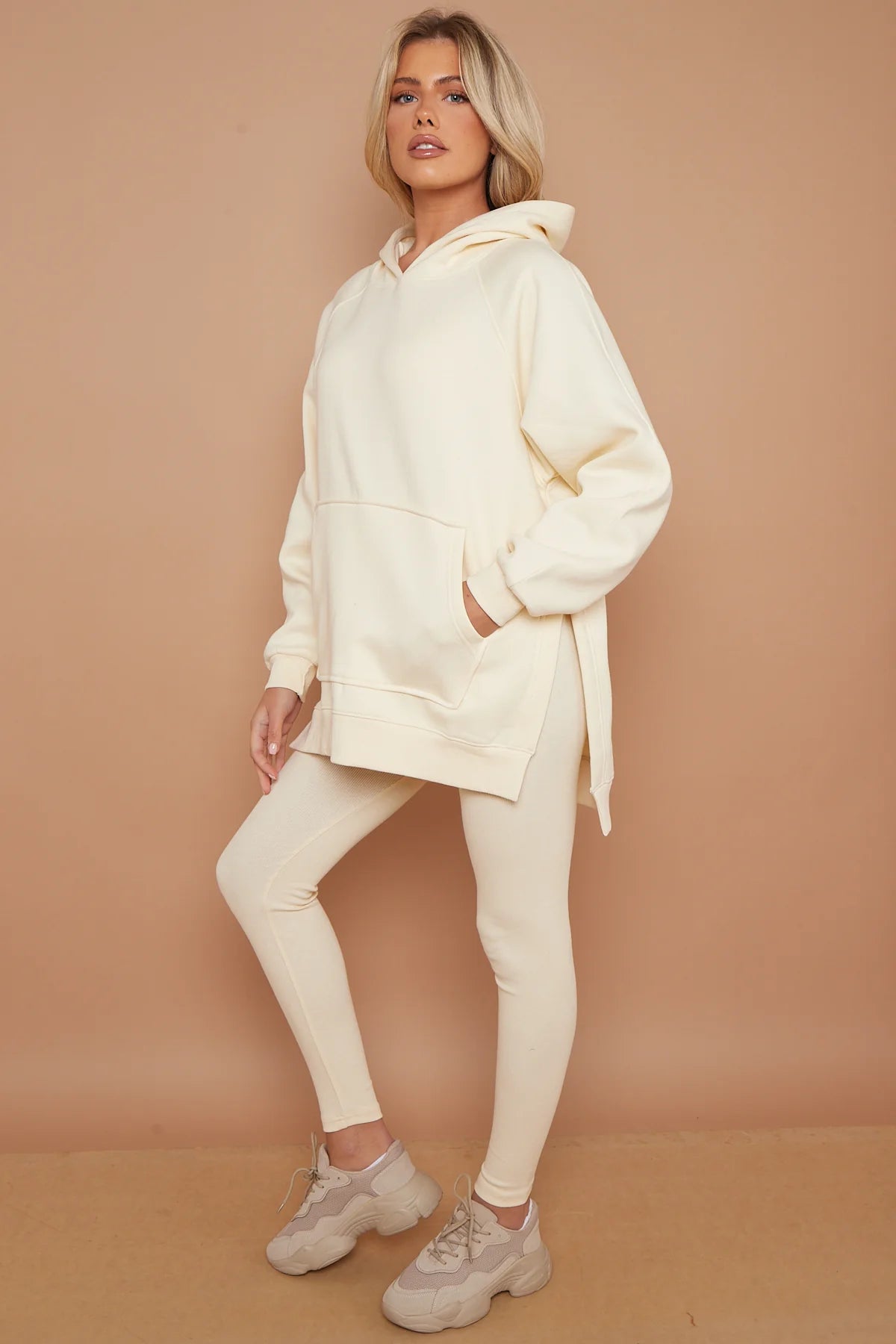 Oversized Split Sides Hoodie & Legging Co-Ord Cream