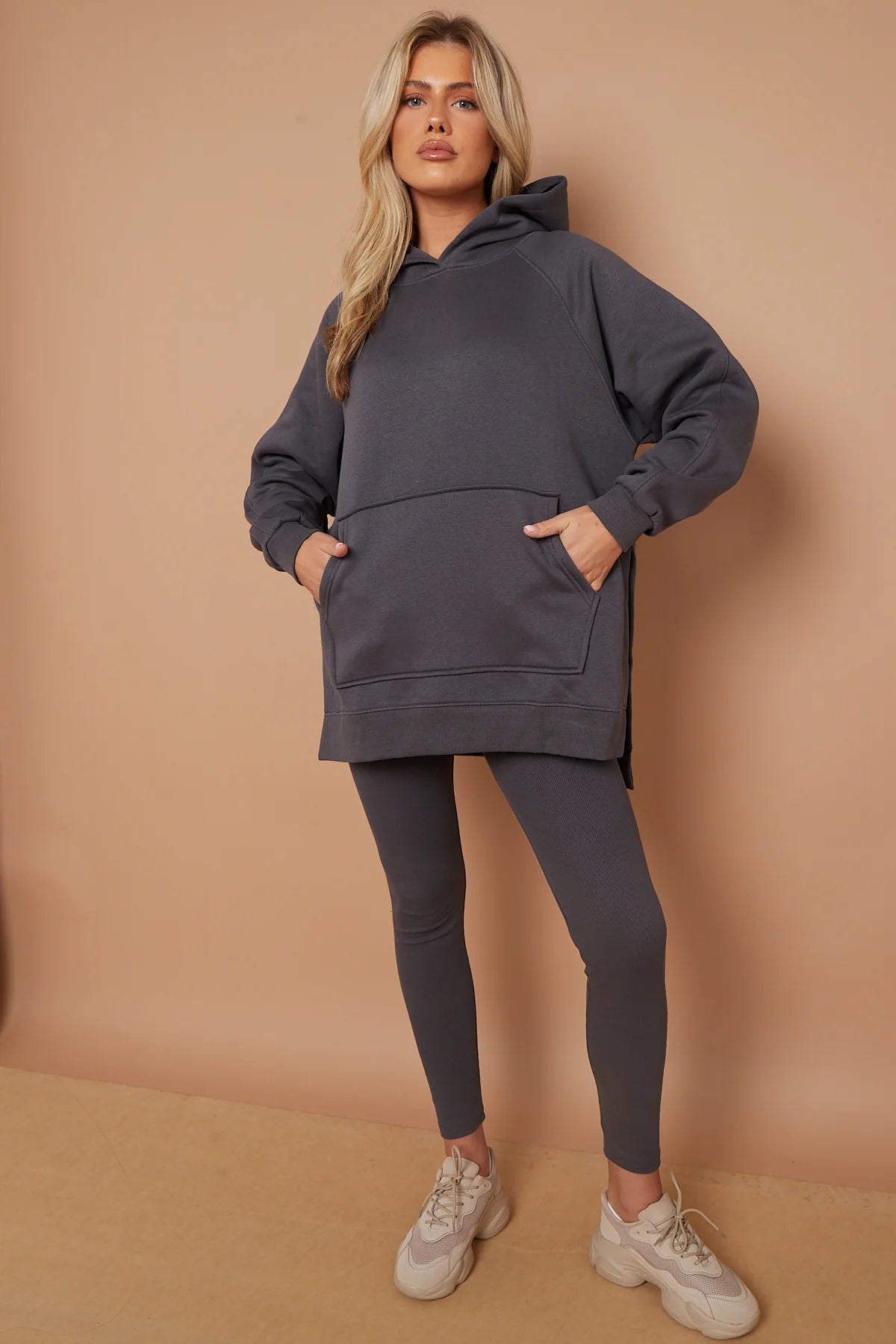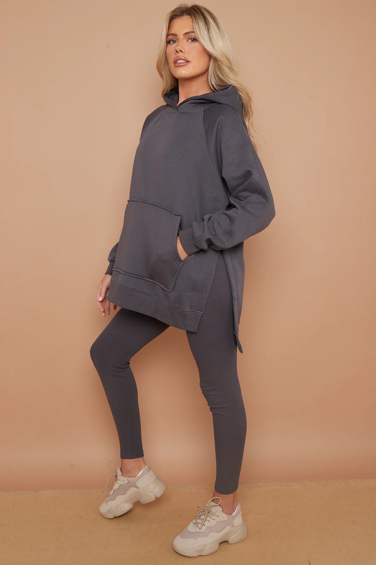 Oversized Split Sides Hoodie & Legging Co-Ord Charcoal