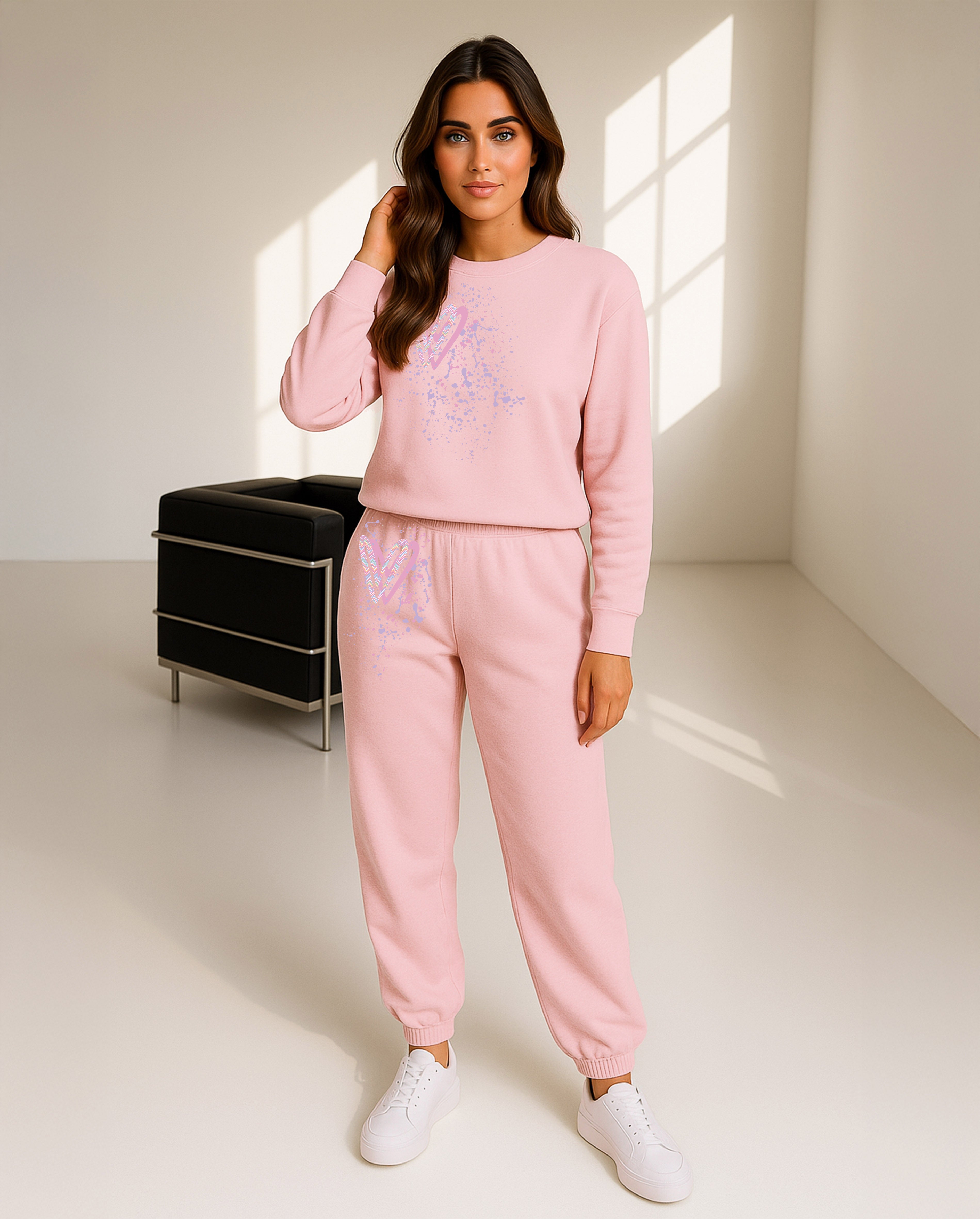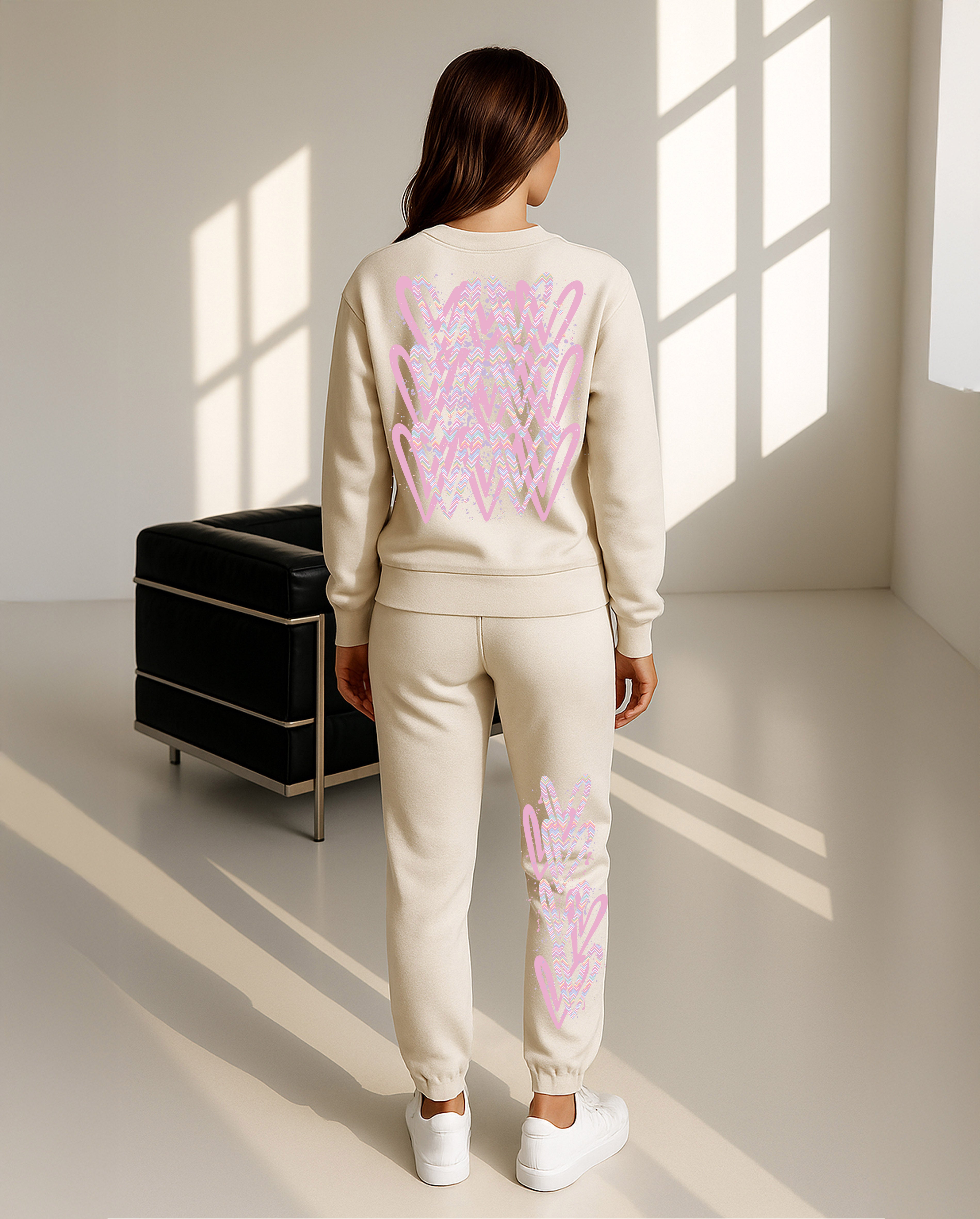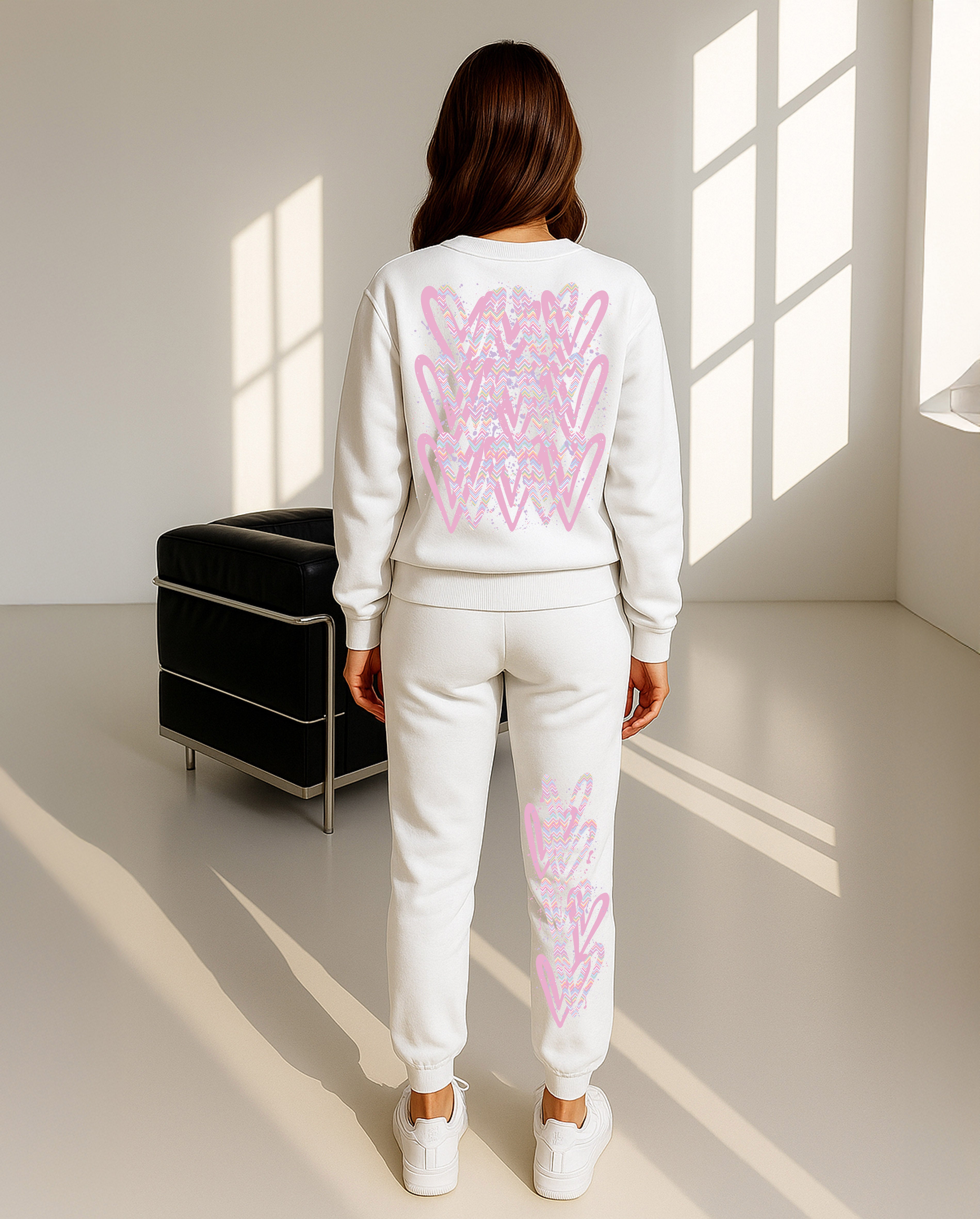 Pastel Zig Zag Hearts Printed Sweatshirt Tracksuit Adult