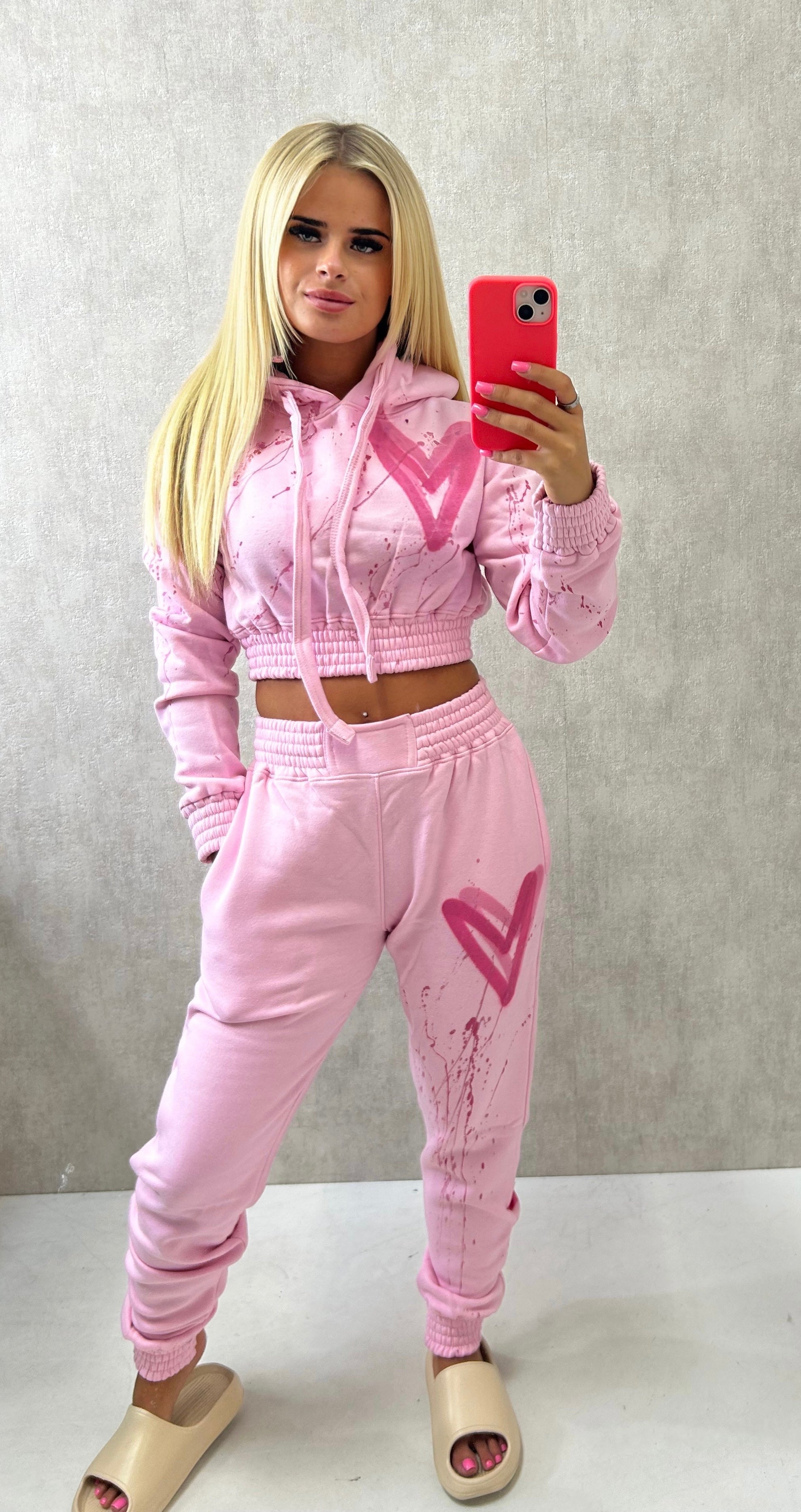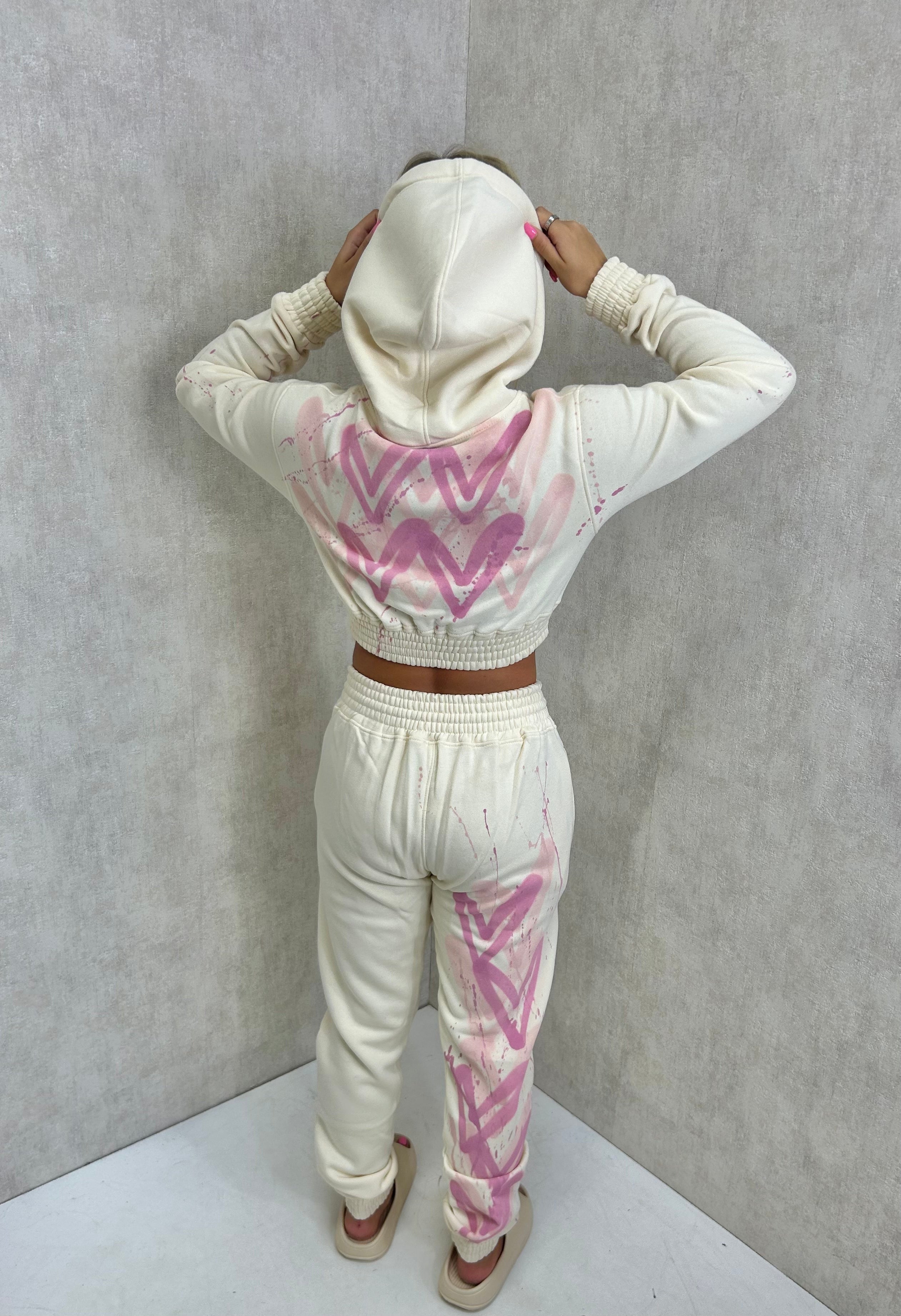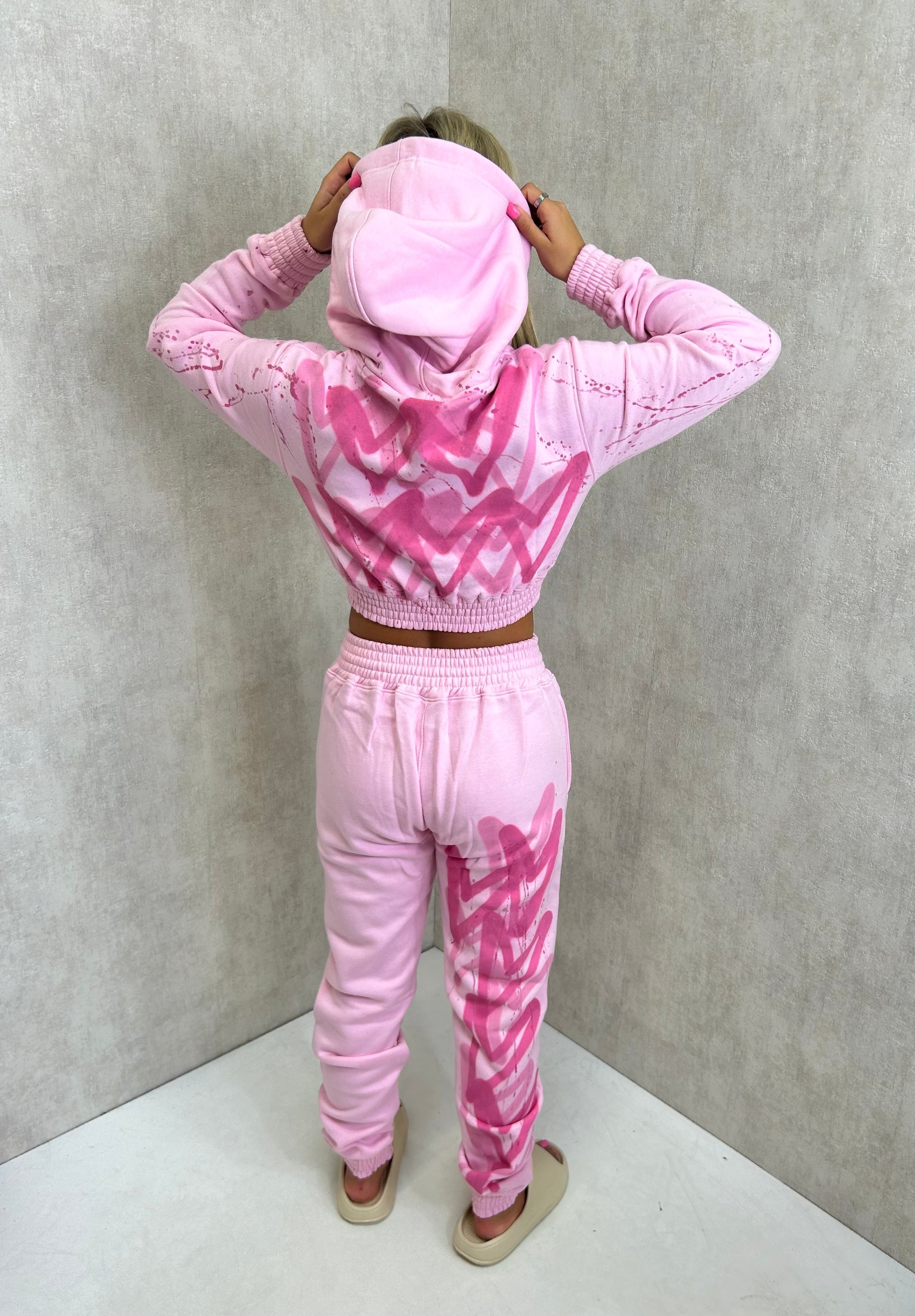 Pink Hearts Spray Painted Cropped Tracksuit Adult