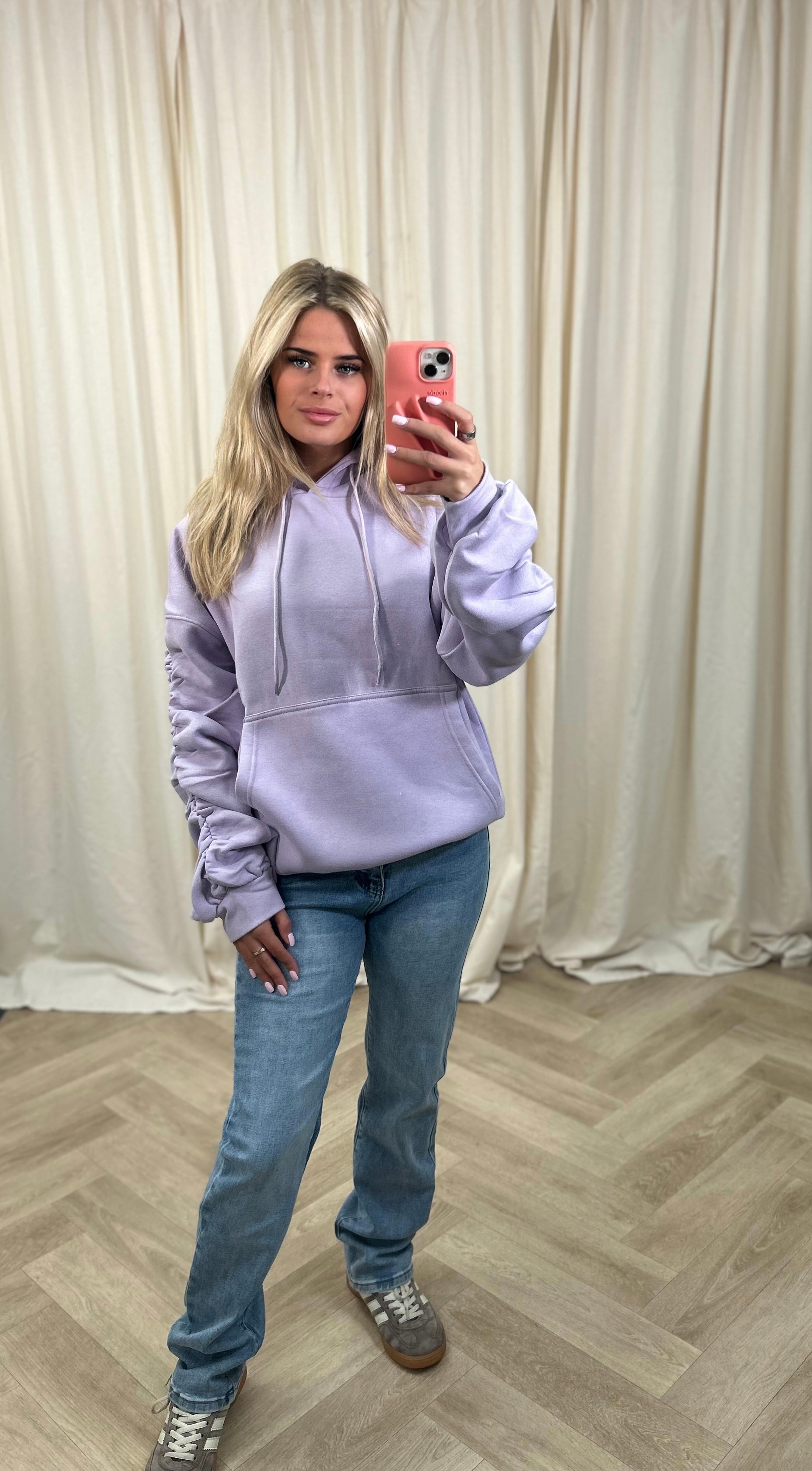 Product form Lilac Ruched Hoodie £15.00 Size Size chart 4 6 8 10 12 14 Quantity Out of stock Guaranteed secure & safe checkout.