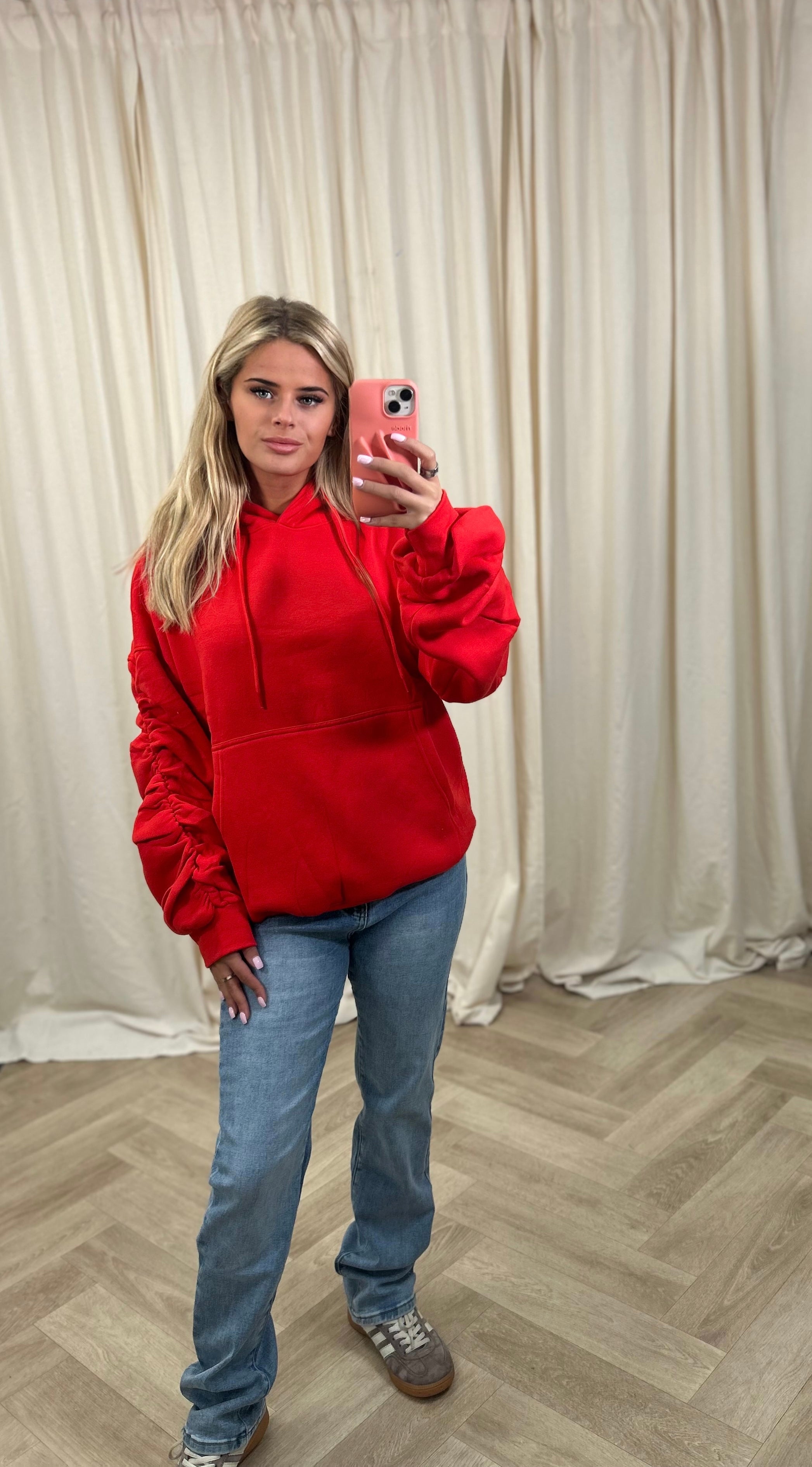 Product form Red Ruched Hoodie £15.00 Size Size chart 4 6 8 10 12 14 Quantity Out of stock Guaranteed secure & safe checkout.