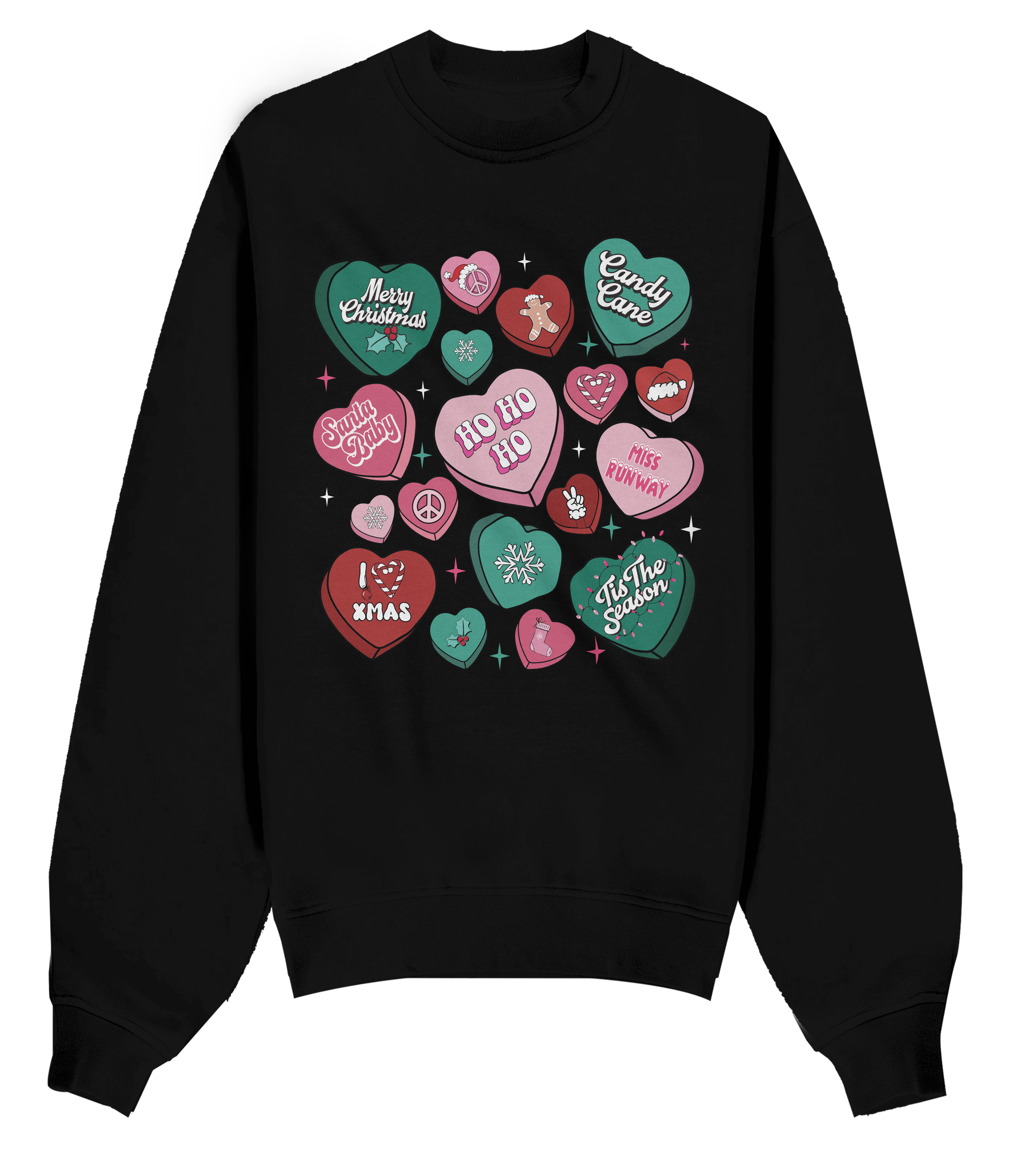 Pink,Green,Red Christmas Hearts Sweatshirt